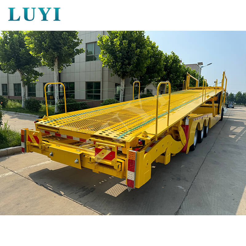 LUYI 40ft 4-assige gesloten dubbeldekker autotransporter-oplegger van Shandong Luyi Special Vehicle Manufacturing Co., Ltd. is ontworpen voor de levering van nieuwe auto's, het transport van gebruikte auto's en andere scenario's. De volledig gesloten carrosserie heeft een laadvermogen van 40-60 ton dankzij de 4-assige structuur en beschermt voertuigen tegen externe schade. Het dubbeldeksstapelplatform vergroot de laadcapaciteit tot 6-8 eenheden, terwijl het kantelbed het laden en lossen vereenvoudigt bij modellen met een laag chassis. Het is gemaakt van staal en biedt een hoge sterkte, slijtvastheid en kosteneffectiviteit, ideaal voor hoogfrequent, zwaar commercieel transport.