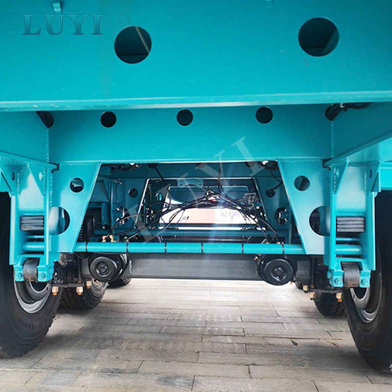 Extreem zwaar versterkt chassis: Het chassis is de ruggengraat van deze trailer. Hij is gebouwd met verbrede hoofdbalken van staal met hoge treksterkte en is voorzien van uitgebreide kruisverstevigingen om weerstand te bieden aan de enorme torsiekrachten die worden gegenereerd tijdens het zijwaarts kantelen van een lading van 100 ton.