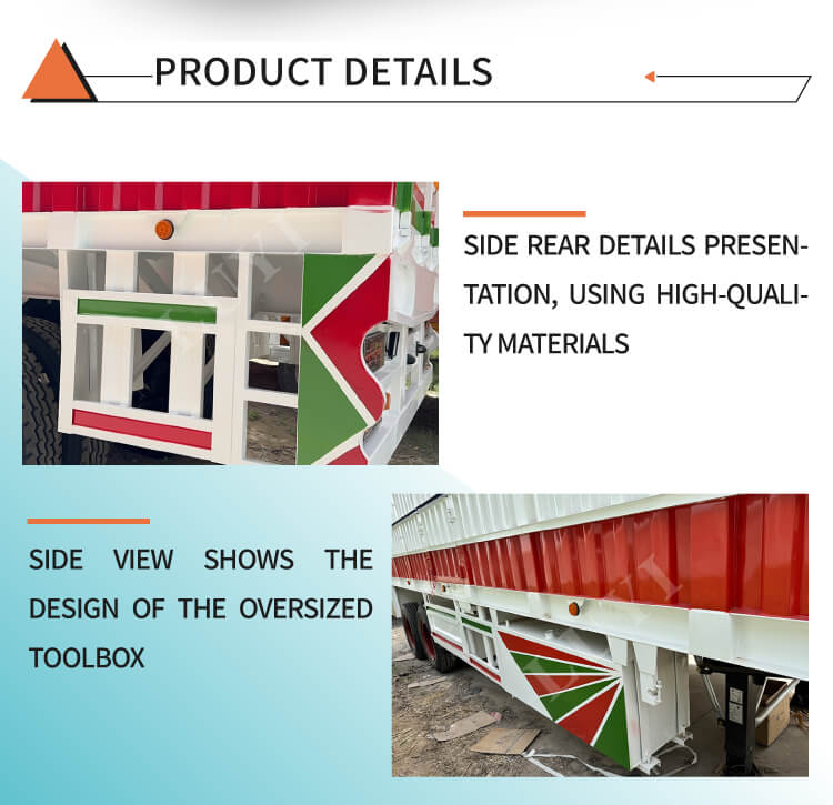 Het product heeft afmetingen van 12500×2500×1600 mm, uitgerust met 3 assen (optionele merken ZY, Fuhua, BPW) en dubbele opties voor mechanische/luchtvering om soepel rijden te garanderen. Hij wordt gecombineerd met de standaard JOST-steunpoten van 28 ton en banden met de specificaties 12R22.5/12.00R20/11R22.5, waardoor de veiligheid bij het laden en lossen en het aanpassingsvermogen aan de wegomstandigheden verder worden verbeterd. Bovendien verbeteren de bladveren van 90×13×10 mm de draagstabiliteit en kan de kleur naar wens worden aangepast, waardoor een betrouwbare en flexibele oplossing op maat wordt geboden voor logistiek en transport.