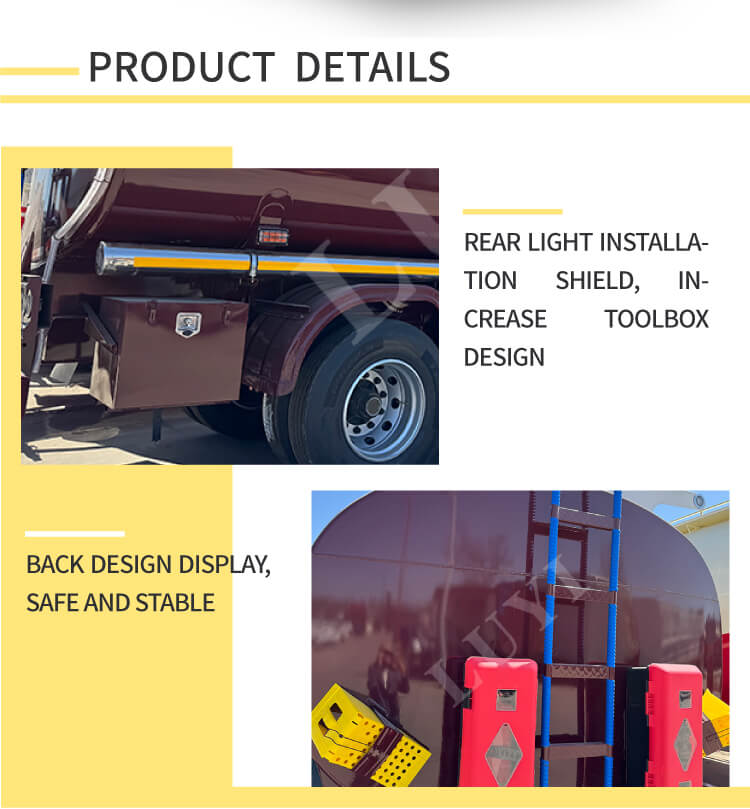 De Luyi 3-assige koolstofstalen olietankoplegger, afkomstig uit de provincie Shandong, China, is een uitstekende keuze voor professioneel brandstoftransport als vrachtwagenoplegger. Met afmetingen van 12.000 x 2.500 x 3.000 mm is hij gemaakt van koolstofstaal, heeft hij een stevige en duurzame structuur en heeft hij een maximaal effectief laadvermogen van 70 ton, wat efficiënt kan voldoen aan de behoeften op het gebied van brandstoftransport.