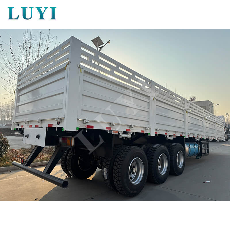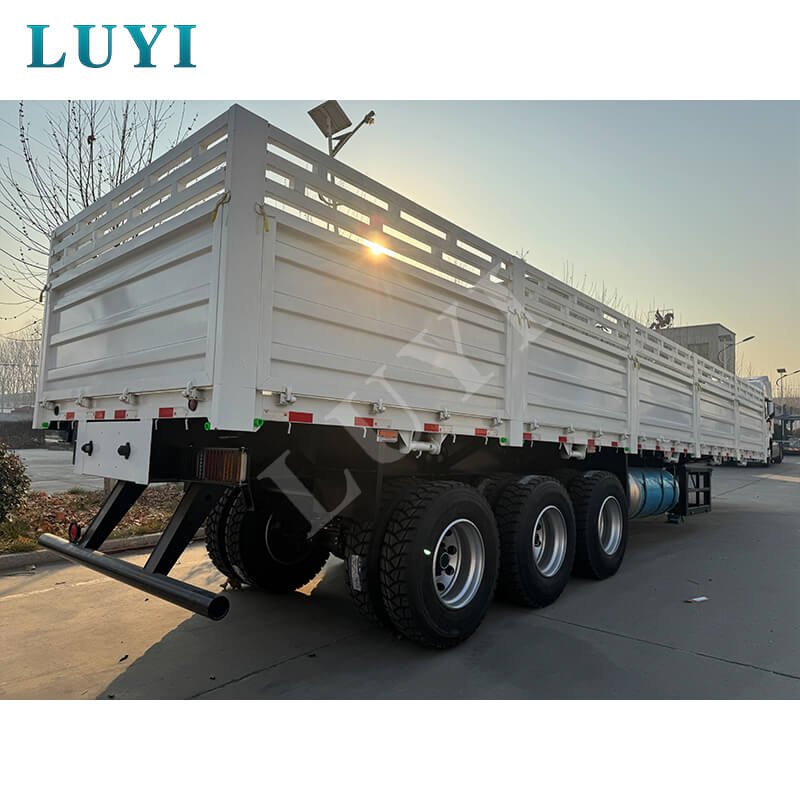 Luyi Vehicles 3-assige 1,5 m zijbordoplegger, afkomstig uit de provincie Shandong, China, is een krachtige vrachtoplegger ontworpen voor zwaar transport. Hij is gebouwd met hoogwaardig staal, heeft een vaste afmeting van 1250025001200 mm en een maximaal effectief laadvermogen van 80 ton, waardoor hij volledig voldoet aan de vraag naar het vervoeren van zware vrachten.