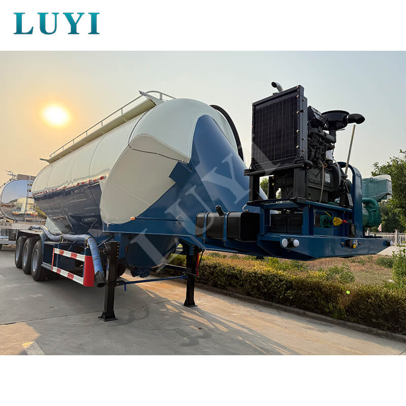 De Luyi 3-assige cementtankoplegger van 40 kubieke meter is een gloednieuwe zware oplegger, speciaal gebouwd voor cementtransport. Het wordt geproduceerd in China met een productiecapaciteit van 100 eenheden per cyclus en voldoet aan de behoeften van bulkaankopen.