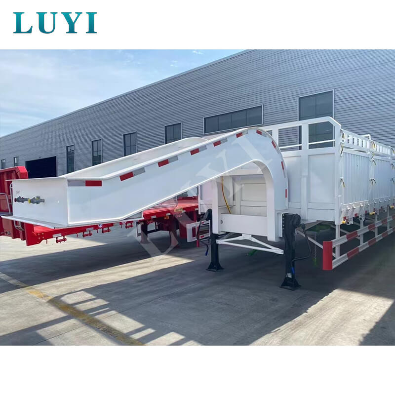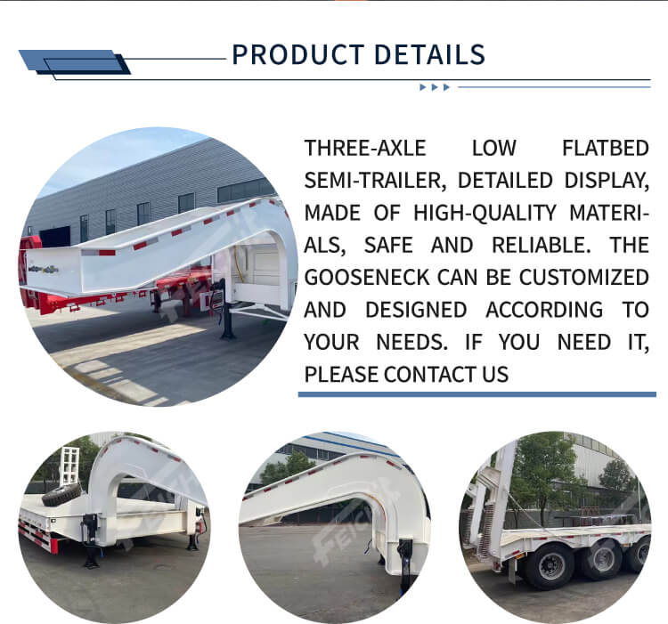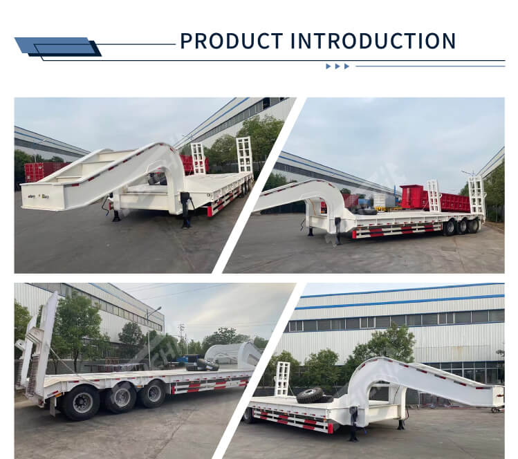 Het is gemaakt van hoogwaardig staal en heeft een afmeting van 17.000×3000×1500 mm, waardoor er voldoende ruimte is voor vracht. Hij beschikt over 4 assen voor een sterke belasting, met optionele lucht- of bladvering om stabiel rijden en effectieve bescherming van de lading te garanderen. Het afneembare zwanenhalsontwerp vergroot de laadflexibiliteit, terwijl hydraulische of handmatige ladderopties het laden en lossen van zwaar materieel vereenvoudigen.