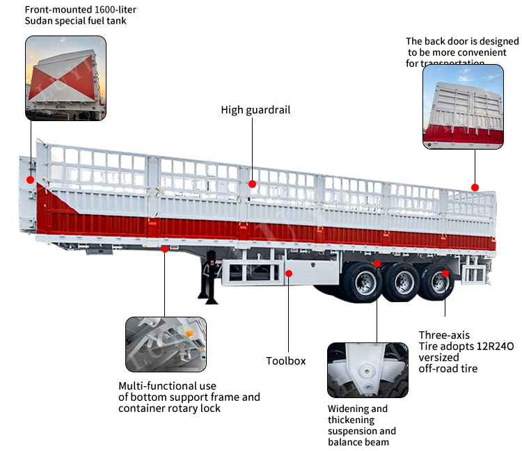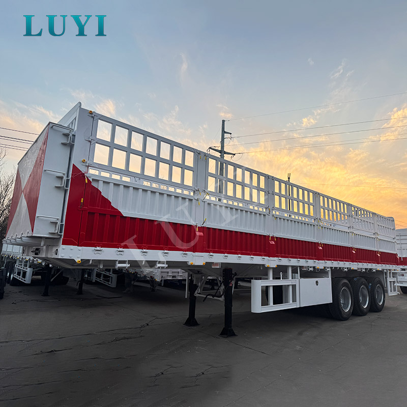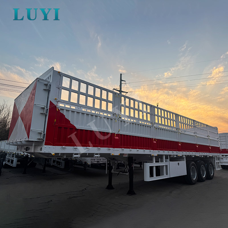De LUYI 3-assige zijwandoplegger is een zwaar transportwerkpaard gebouwd voor bulkvrachtbehoeften, verkrijgbaar in laadvermogens van 50T, 60T en 80T. Met een lengte van 1550025504000 mm heeft hij een robuuste stalen carrosserie en wordt hij geleverd met twee veringsopties: mechanische vering voor kosteneffectieve duurzaamheid en luchtvering voor soepelere ritten op ruige wegen. Uitgerust met 12 stuks 12r22.5-banden en topassen van Feichi, BPW of Fuwa, zorgt hij voor stabiele prestaties, zelfs onder maximale belasting.