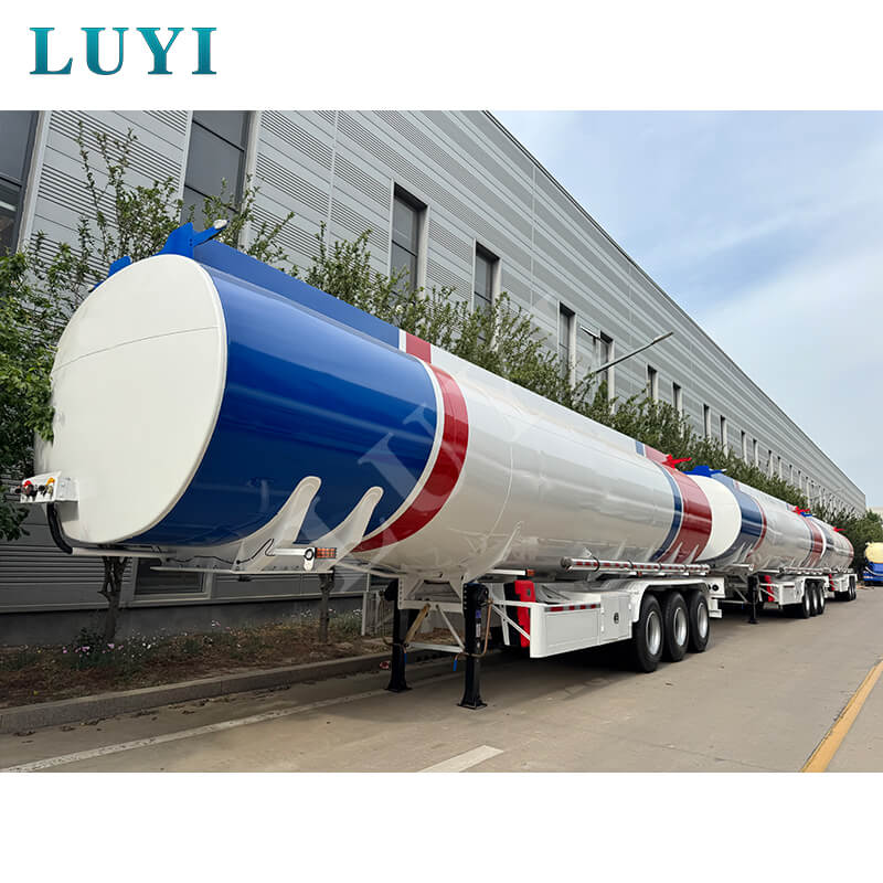 Deze 3-assige, 45.000 liter aanpasbare olietankoplegger met 3 tanks, geproduceerd in Shandong, China, is een professioneel brandstoftransportvoertuig vervaardigd uit hoogwaardig staal. Het combineert duurzaamheid en functionaliteit om te voldoen aan diverse behoeften op het gebied van brandstoftransport.