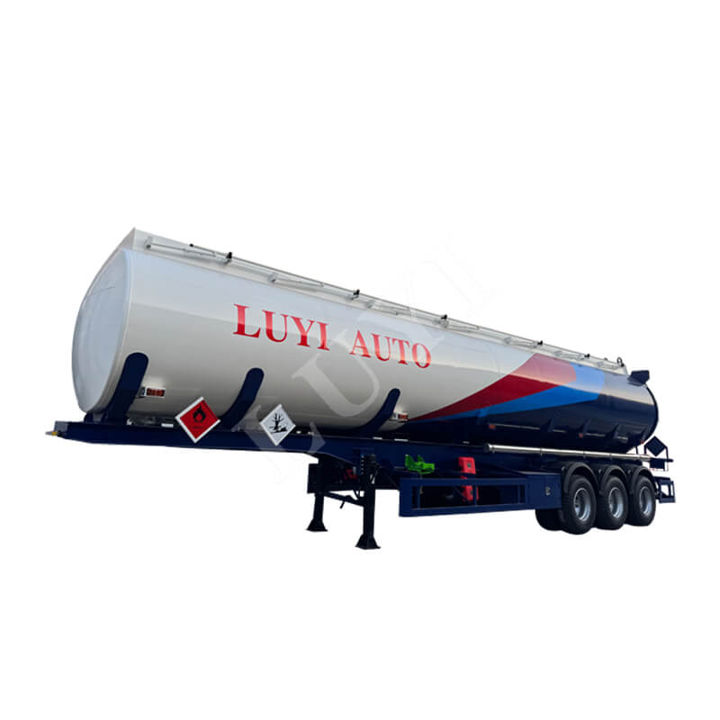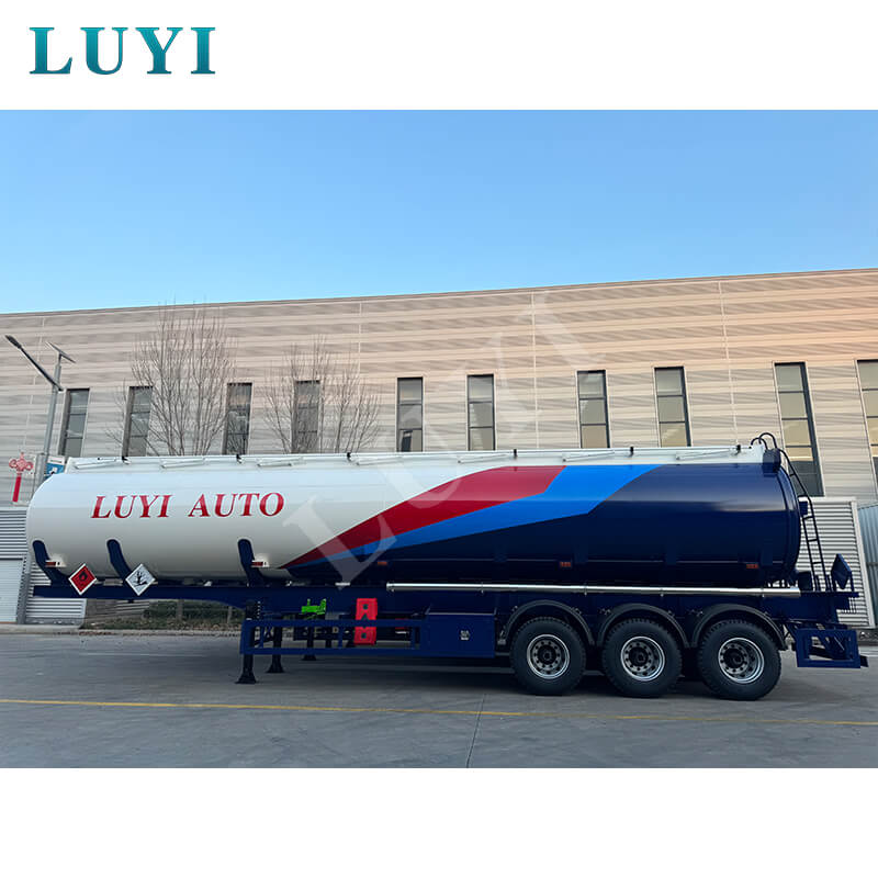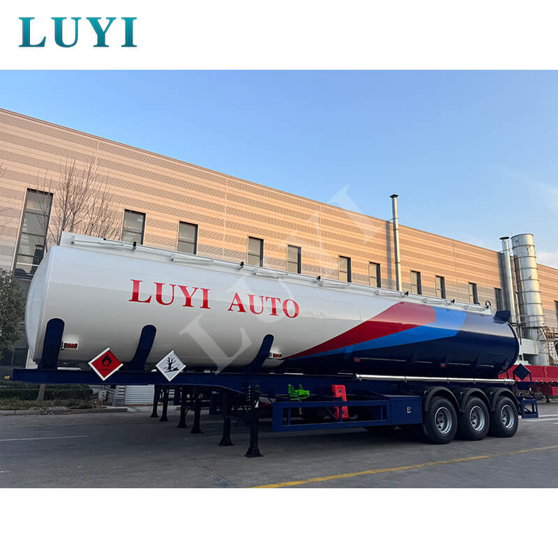 De Luyi 3-assige 5-compartimenten 45.000 liter koolstofstalen olietanker-oplegger, afkomstig uit de provincie Shandong, China, is een zeer efficiënte vrachtwagenaanhangwagen die speciaal is ontworpen voor het transport van aardolie, met een solide kwaliteit die geschikt is voor verschillende transportscenario's.