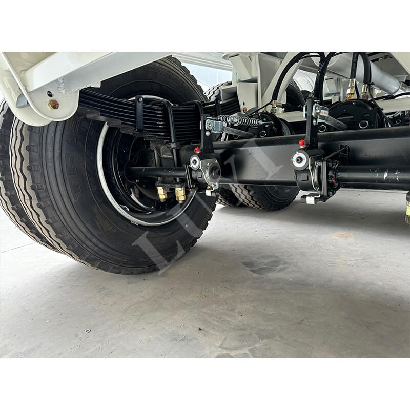De voertuigafmetingen zijn 14.000×2500×40.000 mm, met een tankvolume van 50.000 liter, en de maximale effectieve belasting past hier bij, waardoor kan worden voldaan aan de transportbehoeften van grote hoeveelheden vloeibare goederen. Er zijn twee opties voor mechanische vering en luchtvering beschikbaar, gecombineerd met 12R22.5-banden en 9.00-22.5-velgen, die de rijstabiliteit en veiligheid garanderen. De standaard stempels van 28 ton bieden stabiele ondersteuning wanneer het voertuig geparkeerd staat.