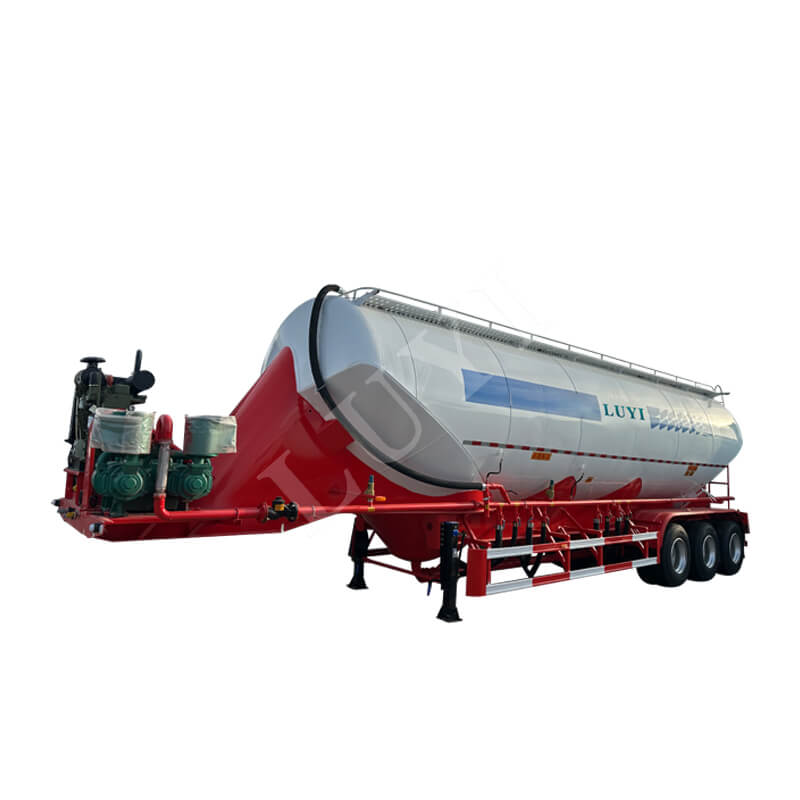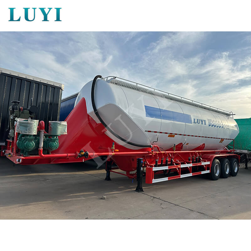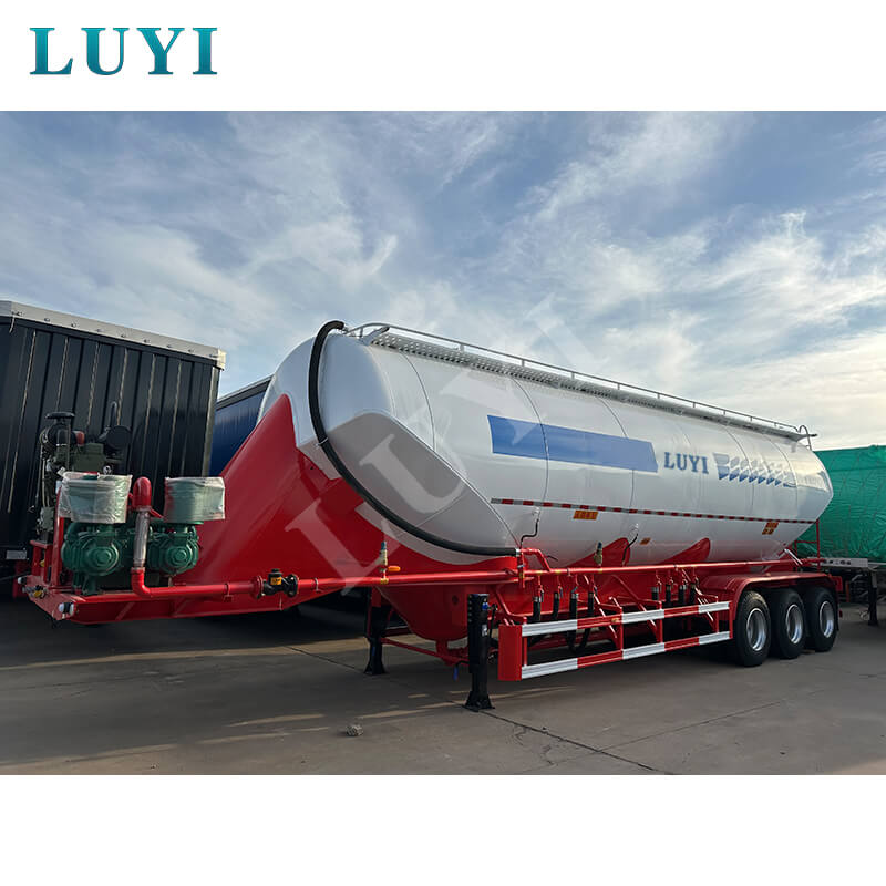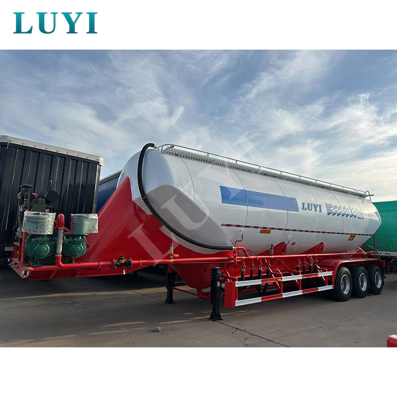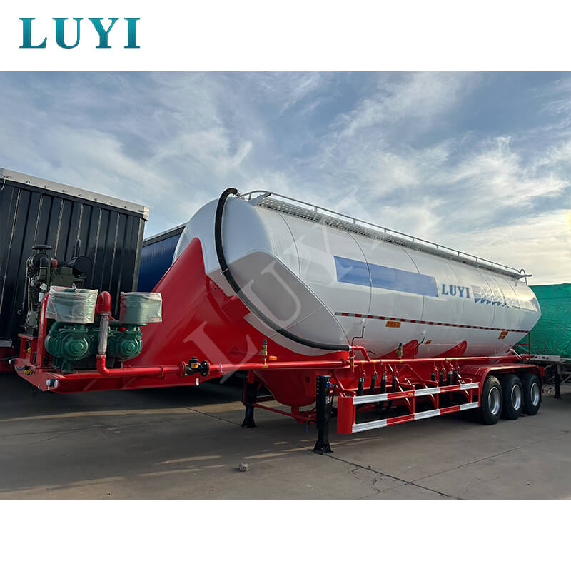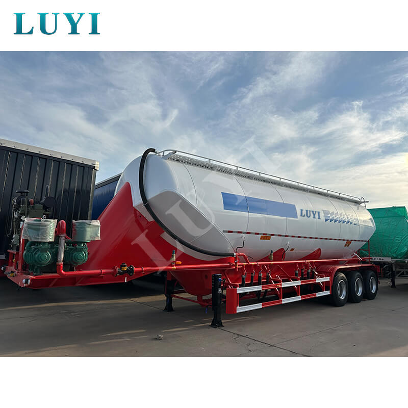 De LUYI 3-assige 50CBM Bulk V-Type Cement Tanker Semi-Trailer (ook wel poedertankwagen genoemd), afkomstig uit de provincie Shandong, China, is een oplegger die speciaal is ontworpen voor het transport van bulkcementpoeder. Het is geschikt voor scenario's met vrachtwagentrailers en biedt een efficiënte oplossing voor het transport van bouwmaterialen.