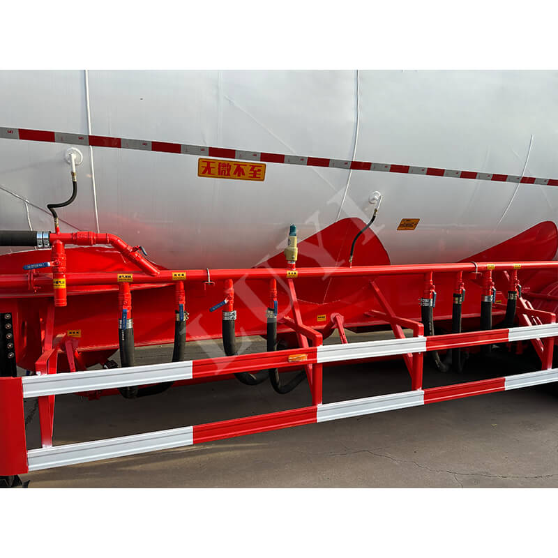De trailer is volledig gemaakt van hoogwaardig staal en gebruikt 16 # kanaalstaal voor de zijbalken, met een solide structuur en een uitstekend draagvermogen. Het maximale effectieve laadvermogen bedraagt 80 ton en het laadvermogen is 50 CBM, wat kan voldoen aan de vraag naar grootschalig cementpoedertransport in bulk. Uitgerust met 3 assen, is het voertuig gekoppeld aan 12R22.5-banden en 9.00-22.5-velgen. Het veersysteem maakt gebruik van mechanische luchtvering, waardoor de rijstabiliteit en het schokabsorptie-effect in evenwicht worden gebracht. De steunpoten hebben een standaardspecificatie van 28 ton om de parkeerveiligheid te garanderen. Wat betrouwbaarder is, is dat het product wordt geleverd met een garantie van zes jaar, die uitgebreide bescherming biedt voor het transport van gebruikers, van kwaliteit tot after-sales service.