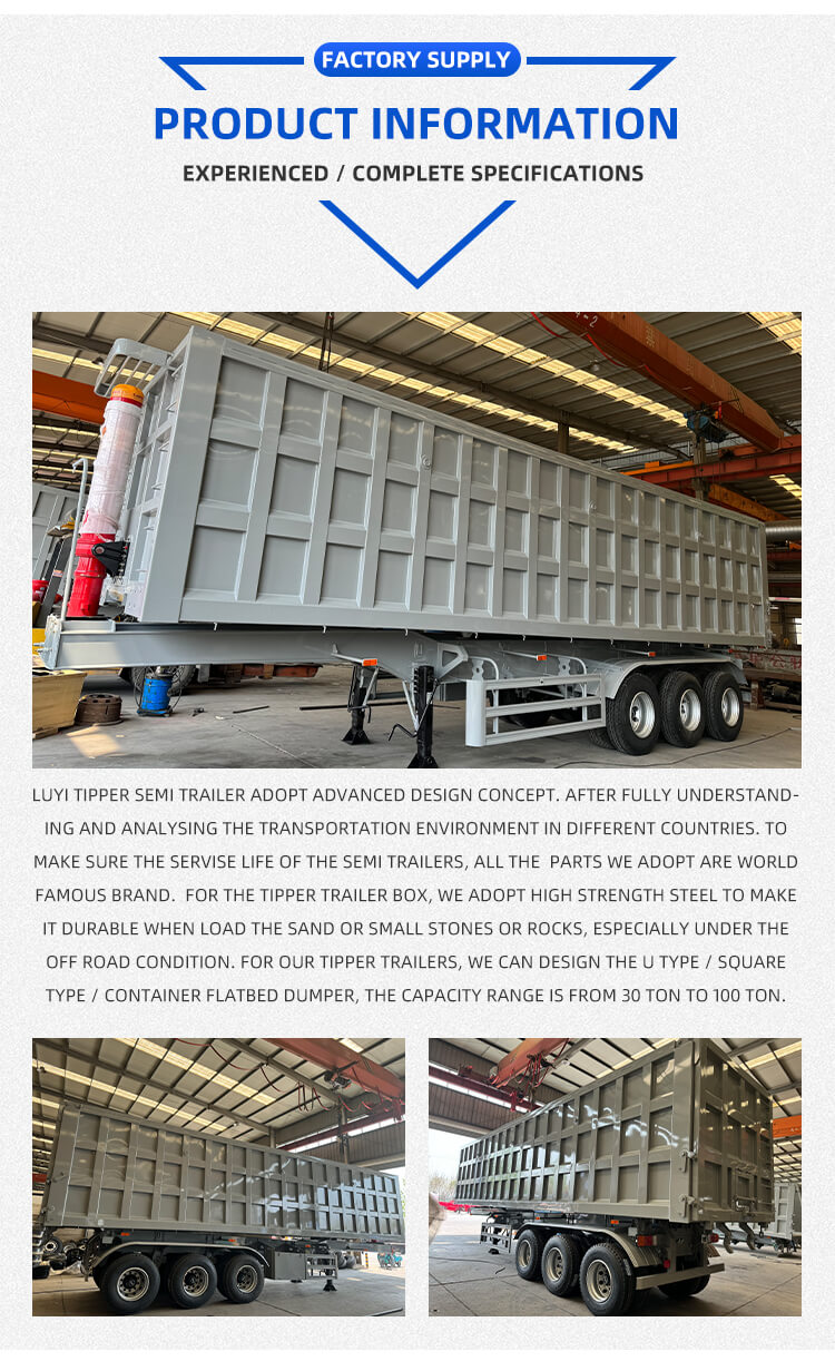 Deze 3-assige achterdumper met hydraulische hefcilinder van 50-60 ton van LUYI is een zware oplossing voor zand- en grindtransport. Afkomstig uit Shandong, China, is hij gebouwd met hoogwaardig staal en beschikt hij over een maximaal laadvermogen van 80 ton om moeiteloos zware lasten te kunnen hanteren.