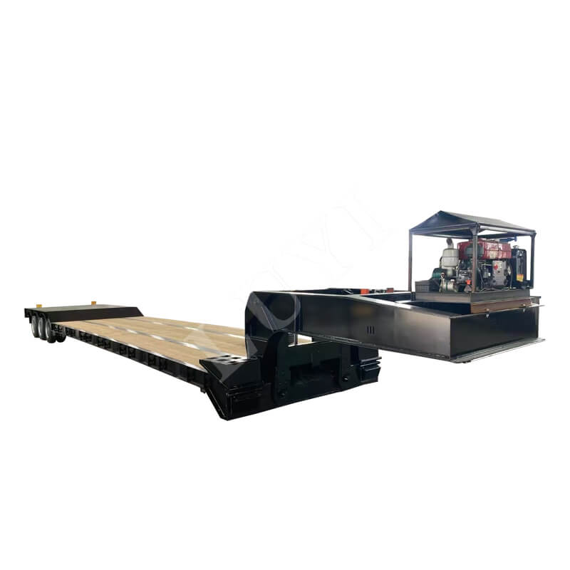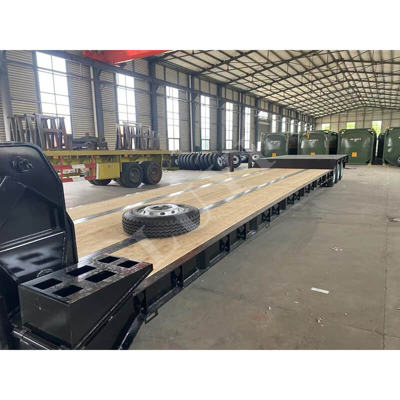 Uitgerust met een 3-assige configuratie, wordt gebruik gemaakt van bekende merkassen zoals BPW en Fuwa. De ophanging kan flexibel worden gekozen uit mechanische vering of luchtvering, gecombineerd met 12R22.5-banden, wat uitstekende rijstabiliteit en draagvermogen oplevert, met een maximaal effectief laadvermogen van 60 ton. Hij is geconfigureerd met standaard landingspoten van 28 ton, en de kingpin biedt JOST-modellen van 2 inch (50 mm) of 3,5 inch (90 mm), wat een stabiele verbinding en een groot aanpassingsvermogen garandeert. Met aanpasbare kleuren en een garantie van zes jaar is dit een betrouwbare keuze voor het transport van zwaar materieel.