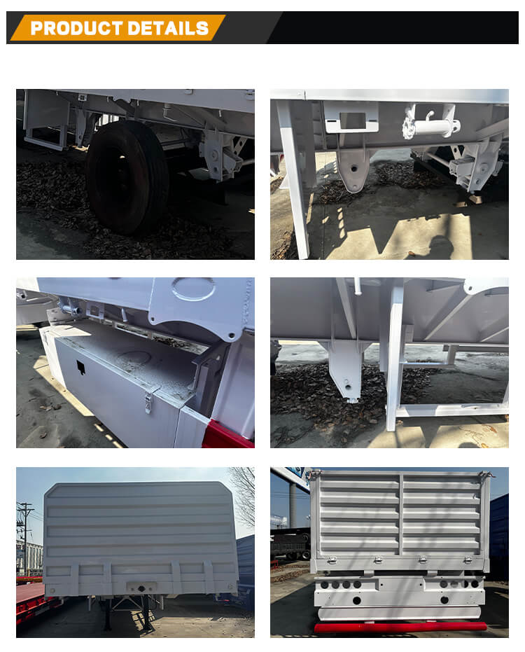 Met een afmeting van 12500×2500×1600 mm is hij uitgerust met 3 assen (optioneel van bekende merken als Fuhua, BPW, SAIF en CIMC) en dubbele ophangingsopties (mechanische en luchtvering) voor soepel rijden. De standaard steunpoten van 28 ton zorgen voor veilig laden en lossen, terwijl banden in 12R22.5/12.00R20/11R22.5 specificaties zich aanpassen aan verschillende wegomstandigheden. Bovendien vergroten de bladveren van 90 x 13 x 10 mm het draagvermogen, verbetert de mechanische ladder het bedieningsgemak, zijn de kleuren aanpasbaar en verhoogt het klepgestuurde remsysteem de rijveiligheid, waardoor het betrouwbare transportondersteuning biedt.