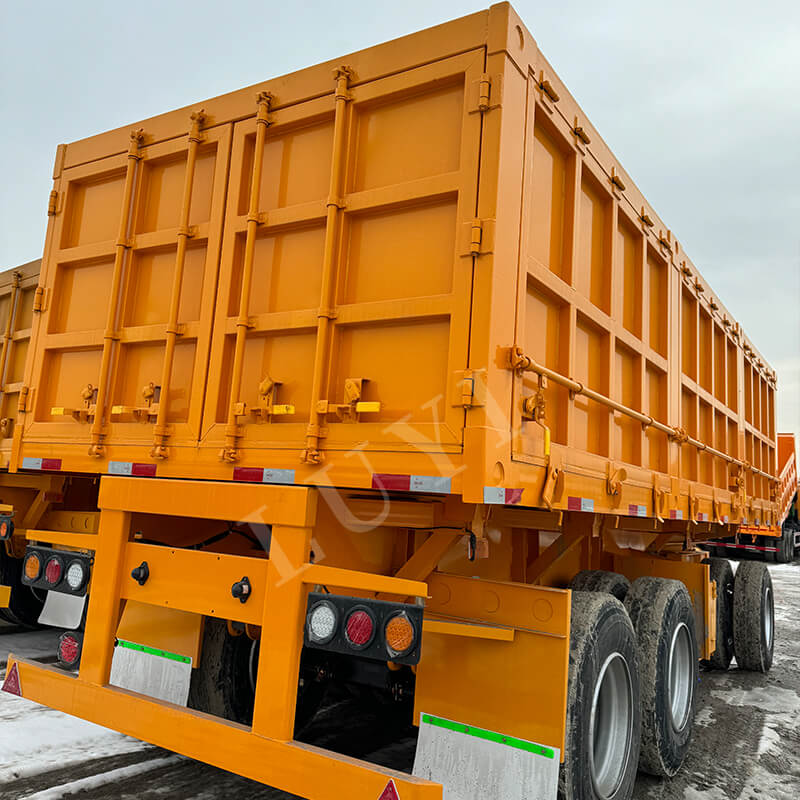 Afkomstig uit de provincie Shandong, China, is de LUYI 3-assige dubbelstaaf zij-tipping dump-oplegger een hoogwaardige vrachtoplegger die geschikt is voor vrachtvervoer in meerdere scenario's. De aanhangeropbouw is gemaakt van hoogwaardig staal en heeft een afmeting van 7500×2500 mm. Het beschikt over een stevige structuur en een stabiel draagvermogen, met een maximaal effectief laadvermogen van 25 ton, waardoor efficiënt transport van containers en bulkgoederen mogelijk is.