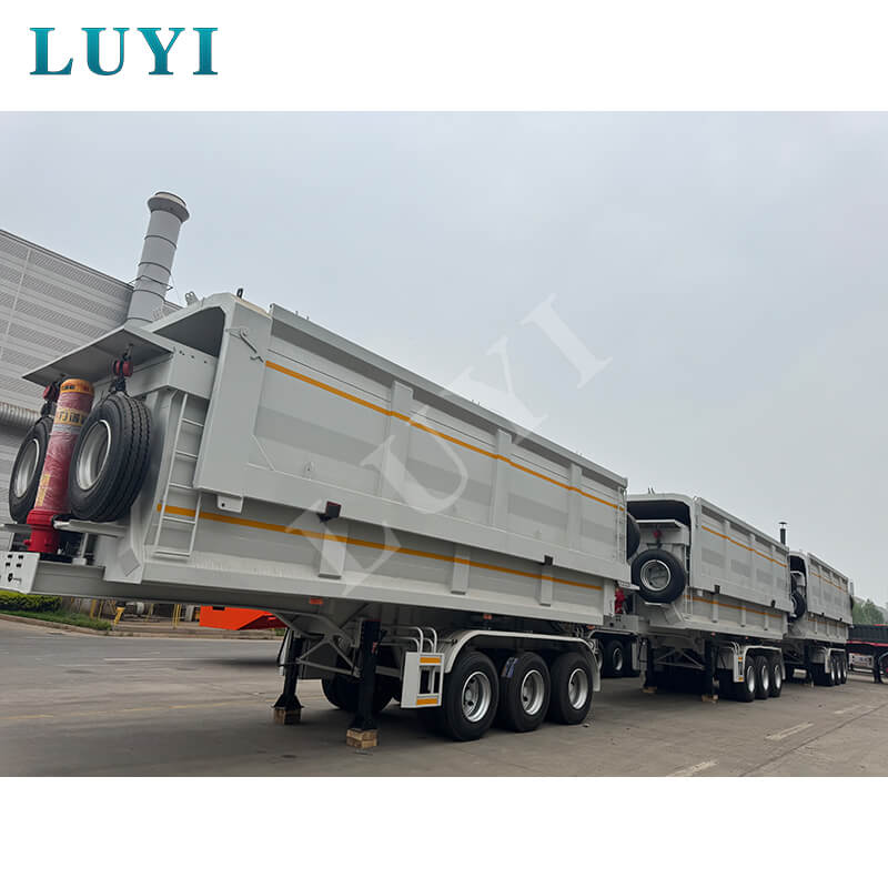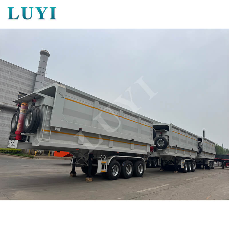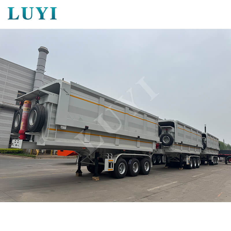 De LUYI 3-assige 60-tons achterkiepdump-oplegger, afkomstig uit de provincie Shandong, China, is speciaal ontworpen voor het slepen van vrachtwagens, waardoor het een ideale uitrusting is voor het transport van zware vrachten. Het is gebouwd met hoogwaardig staal en meet 12500×2500×600 mm, met een stevige en duurzame structuur die zich aanpast aan verschillende transportscenario's.