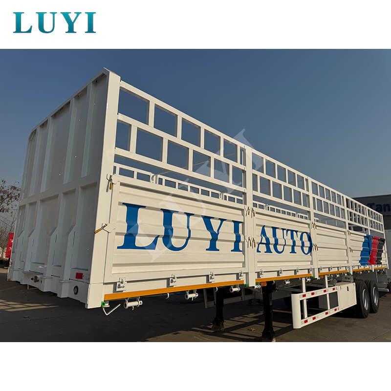 LUYI's nieuw ontworpen 2-assige zijwandoplegger met hoge hekwerk biedt dubbele laadcapaciteiten van 30 en 60 ton, perfect geschikt voor middelzware en zware vrachtbehoeften zoals bouwmaterialen, industriële apparatuur en landbouwproducten. De hoge hekstructuur voorkomt effectief dat er lading wordt gemorst tijdens het transport, terwijl u met de aanpasbare functies de hoogte van het hek, de materialen van de wagen en de antislipvloeren kunt aanpassen aan uw exacte wensen. Deze veelzijdige, op maat gemaakte trailer is nu te koop, ideaal voor zowel logistieke bedrijven als vrachtvervoerders.