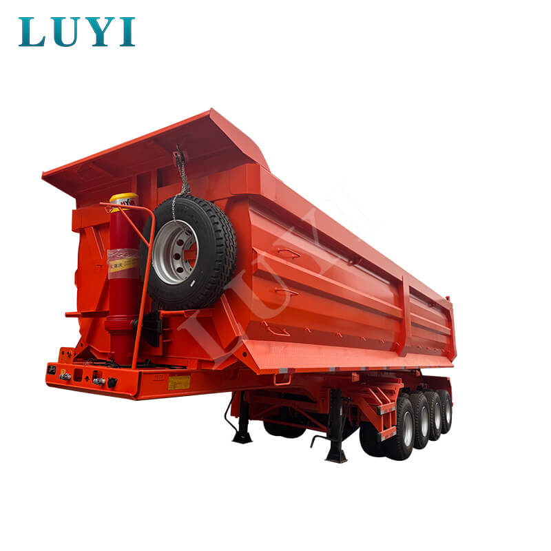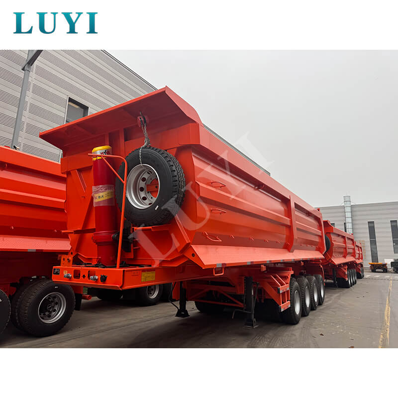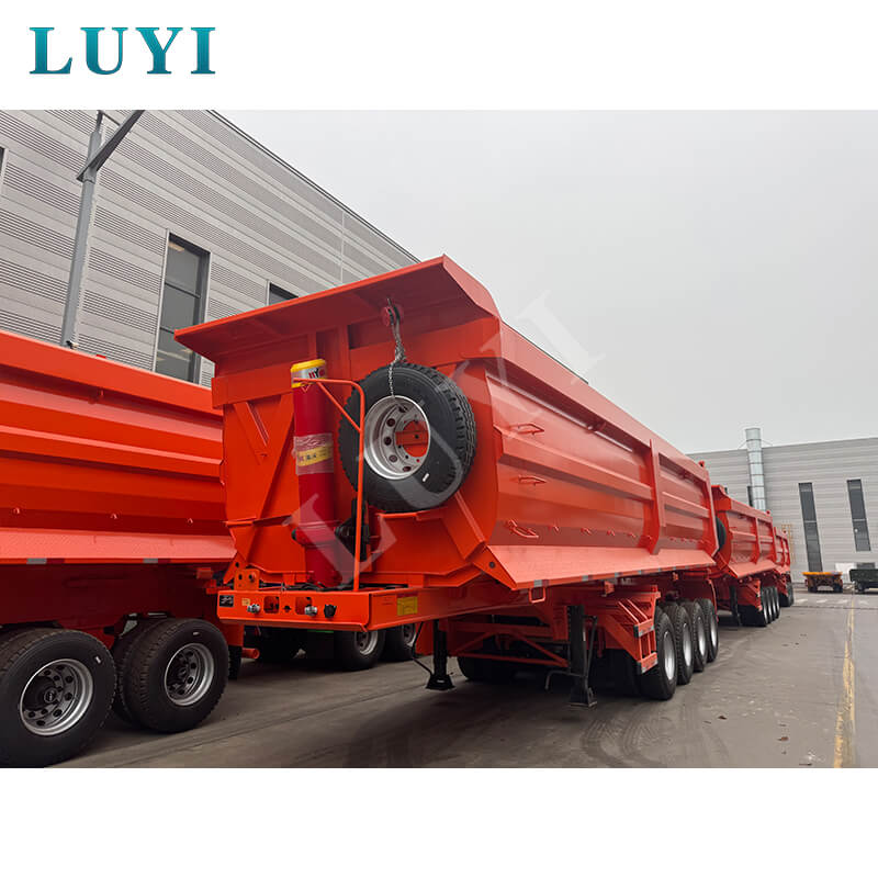 De Luyi 4-assige 100 ton U-type achterkiepdumpoplegger, afkomstig uit de provincie Shandong, China, is een gloednieuwe oplegger met achterlossing, speciaal ontworpen voor zand- en grindtransport. De laadbak is gemaakt van hoogwaardig staal, met afmetingen van 9,6×2,5×2 meter en een inhoud van 35-60 kuub, waardoor het efficiënt laden van bulkgoederen zoals zand en grind mogelijk is.