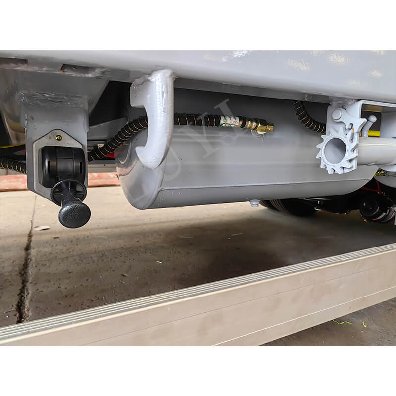 Het remsysteem heeft een dubbellijnig ontwerp om de rijveiligheid te garanderen. Het heeft standaard steunpoten van 28 ton voor stabiele ondersteuning, en de kingpin kan worden geselecteerd als 2 inch (50 mm) of 3,5 inch (90 mm) JOST-merk, passend bij verschillende tractoren. De kleur kan door klanten worden aangepast en voldoet aan diverse gebruiksscenario's, waardoor het een efficiënte en veilige keuze is voor zware vrachtwagenaanhangwagens.