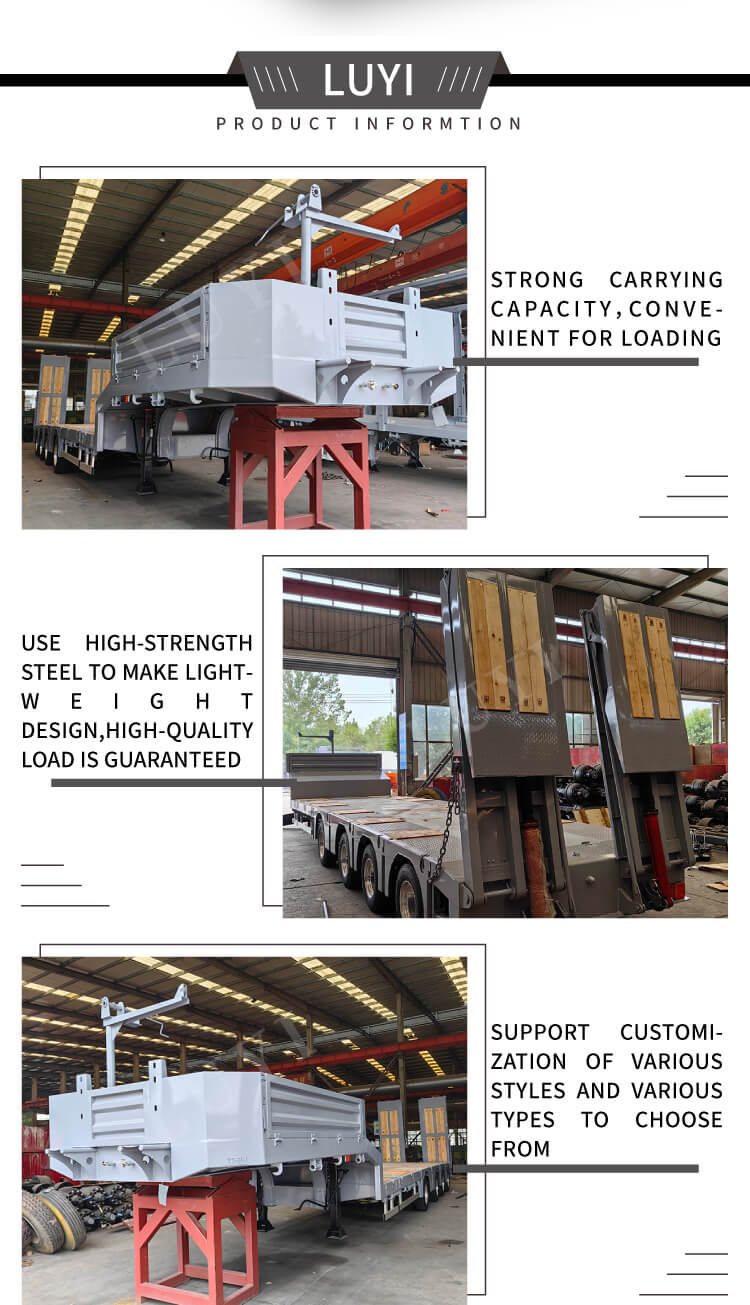 De Luyi 4-assige 80-tons hydraulische dieplader, afkomstig uit de provincie Shandong, China, is een hoogwaardige oplegger die speciaal is ontworpen voor zwaar vrachtvervoer.