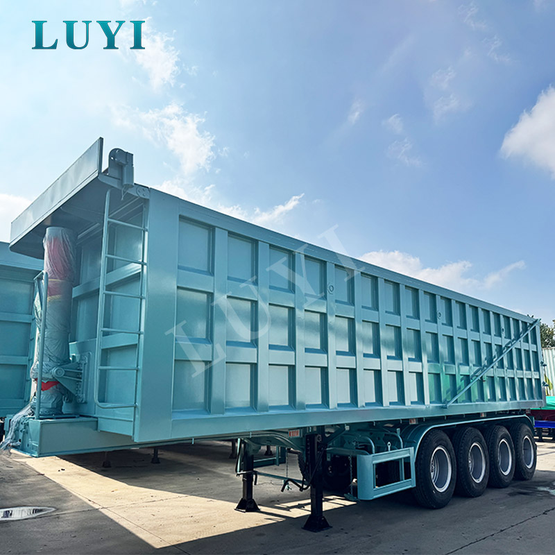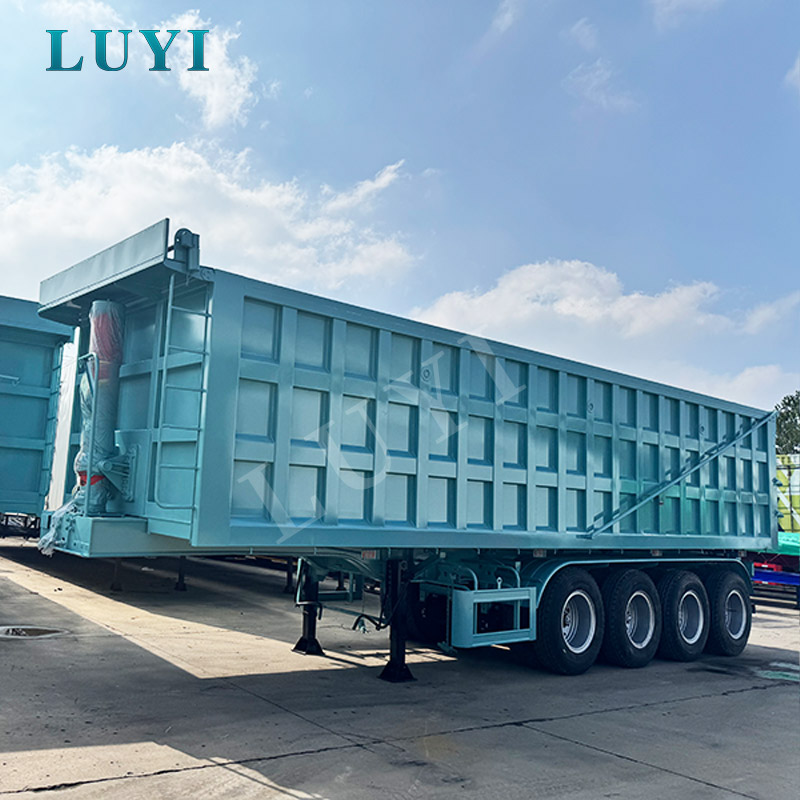 De LUYI 4-assige 80 ton achterdumper, afkomstig uit Shandong, China, is een hoogwaardige oplegger speciaal ontworpen voor het vervoer van bulkmaterialen zoals zand, steen en kolen. Hij is gebouwd met hoogwaardig koolstofstaal en beschikt over nauwkeurige afmetingen van 10.000 x 2500 x 3600 mm, en biedt zowel stevigheid als draagstabiliteit, met een maximaal laadvermogen van 80 ton om te voldoen aan de zware transportbehoeften.