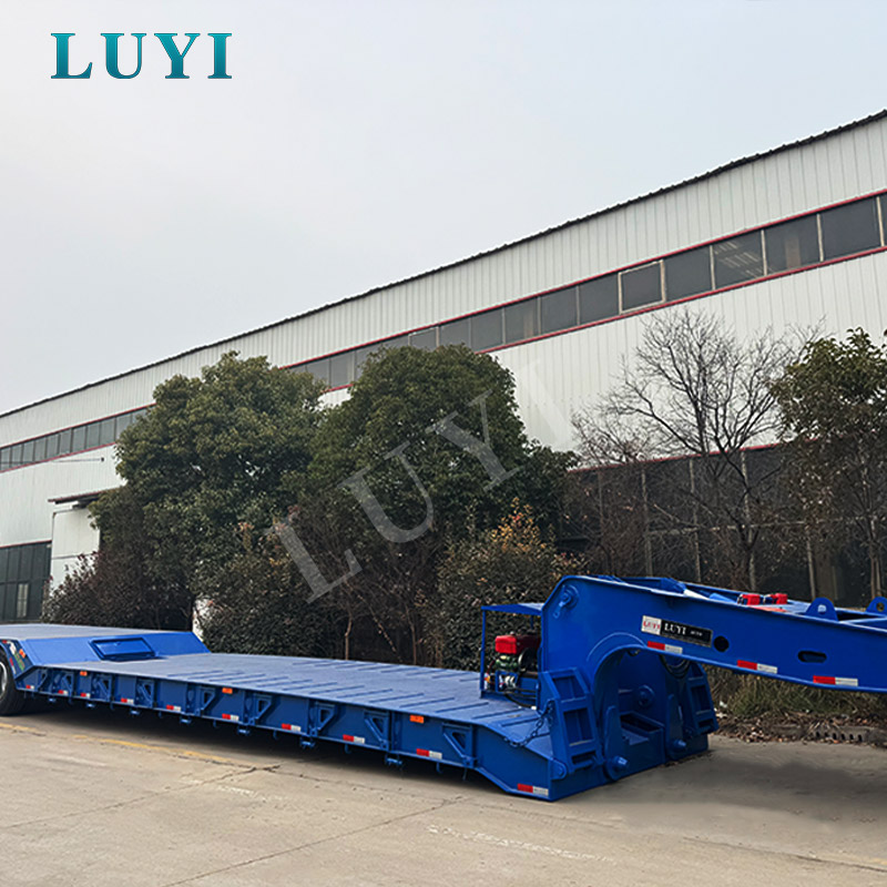 De LUYI 4-assige zwanenhals dieplader, afkomstig uit Shandong, China, is een hoogwaardige oplegger speciaal ontworpen voor zwaar vrachtvervoer. Hij is gebouwd met hoogwaardig staal, heeft een leeggewicht van slechts 6.350 kg, een nominaal draagvermogen van 50.000 kg en een maximaal laadvermogen variërend van 30 ton tot 200 ton, wat uitzonderlijke draagprestaties levert.