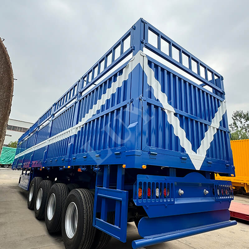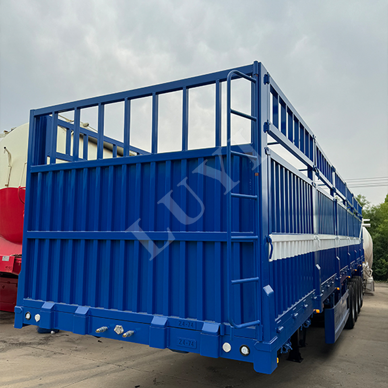 LUYI 4-assige zijkiphek-oplegger, een nieuw heavy-duty opleggermodel gemaakt in China, is gebouwd met hoogwaardig staal. Hij heeft een laadvermogen van 30 ton en is geschikt voor het vervoeren van zware goederen zoals bouwmaterialen en steenkool. De wielbasis van het voertuig varieert van 7000-8000 mm, de spoorbreedte is 1820 mm, uitgerust met 3 assen, 12 banden en bladvering, waardoor een sterke rijstabiliteit wordt gegarandeerd en complexe wegomstandigheden met gemak kunnen worden afgehandeld.