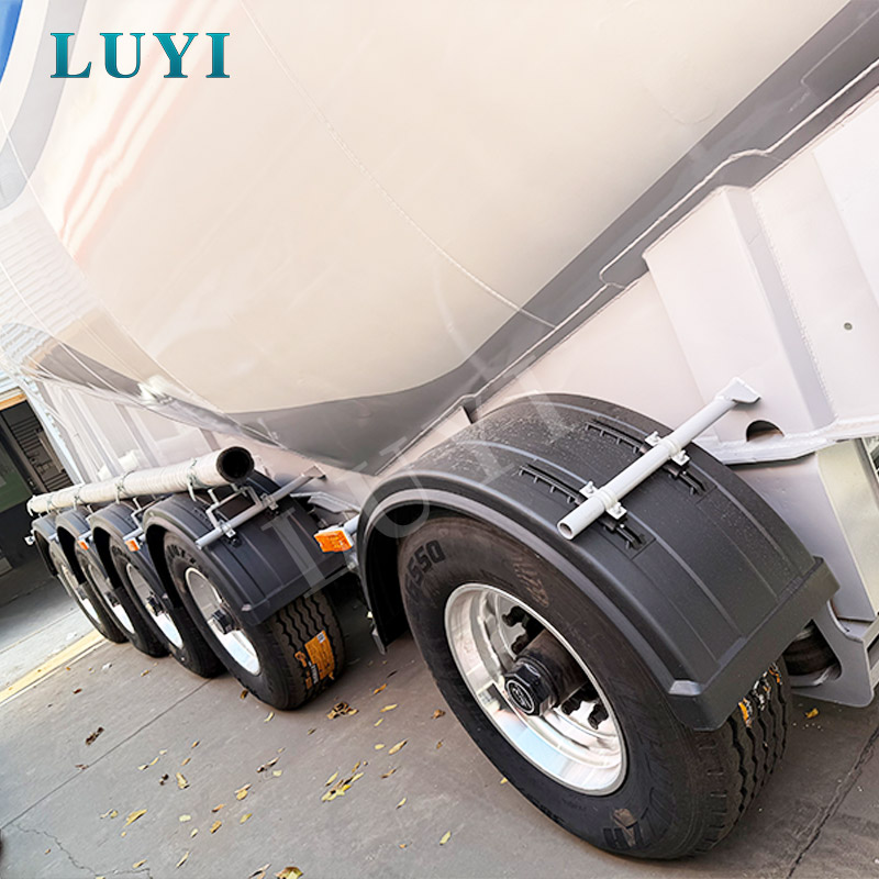 Introductie van de LUYI 4-assige 40 kubieke meter poedertank-oplegger, een hoogwaardige bulkcementtransportoplossing die met trots is vervaardigd in Shandong, China. Als gloednieuwe oplegger speciaal voor het transport van cementpoeder in bulk beschikt hij over een robuuste staalconstructie die duurzaamheid en betrouwbaarheid garandeert, zelfs onder zware omstandigheden.
