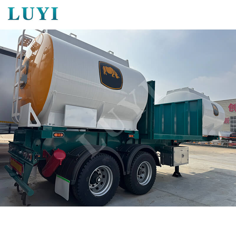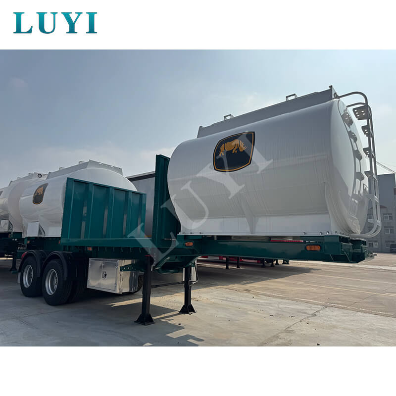Dit is een V-vormige bulkcementtankoplegger van het merk LUYI, geproduceerd in Shandong, China, speciaal ontworpen voor het transport van bulkpoedermateriaal met uitstekende dragende prestaties en hoge uitvoerbaarheid. De trailermaat is 1250025003500MM, het tanklichaam is gemaakt van hoogwaardig staal met een solide structuur en goede luchtdichtheid. Het maximale laadvermogen bedraagt meer dan 30.000 kg, aanpasbaar in specificaties van 40 ton en 50 ton om te voldoen aan de uiteenlopende behoeften op het gebied van bulkvrachtvervoer.