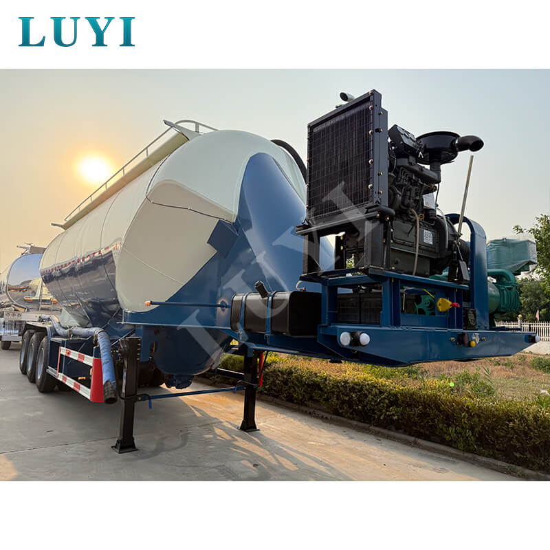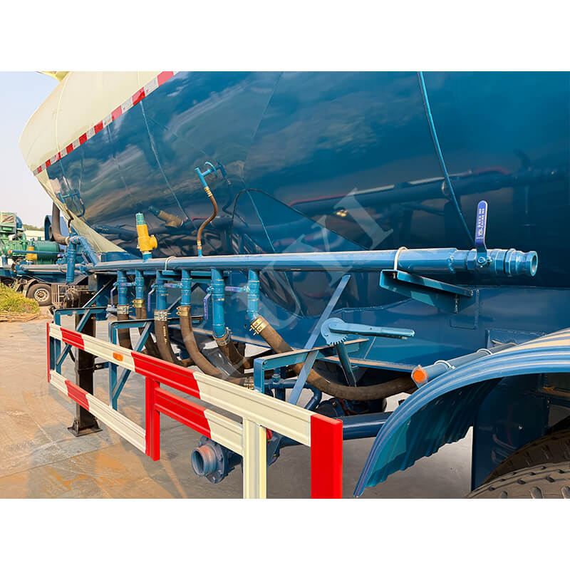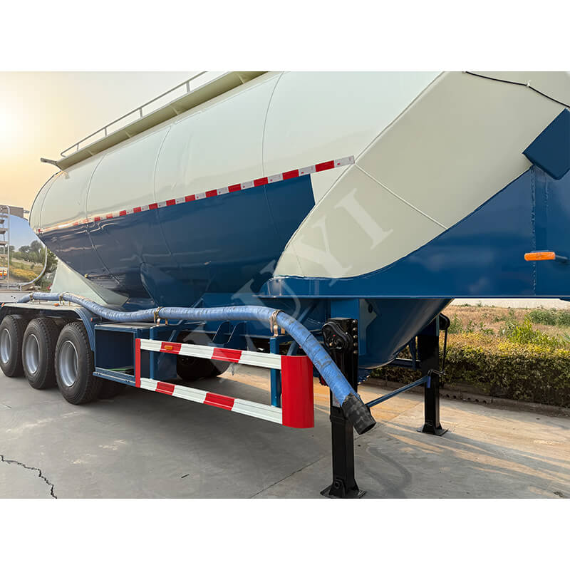 Luyi 48 kubieke meter V-type bulkcementtankoplegger (ook bekend als poedertankwagen), afkomstig uit de provincie Shandong, China, is een hoogwaardige oplegger die speciaal is ontworpen voor het transport van bulkcementpoeder. Het hele voertuig is gemaakt van staal, waarbij 16 # kanaalstaal is gebruikt voor de zijbalken, wat zorgt voor een stevige en duurzame structuur. Het heeft een maximaal effectief laadvermogen van 48 kubieke meter, wat efficiënt kan voldoen aan de transportbehoeften met grote capaciteit van bulkcement.