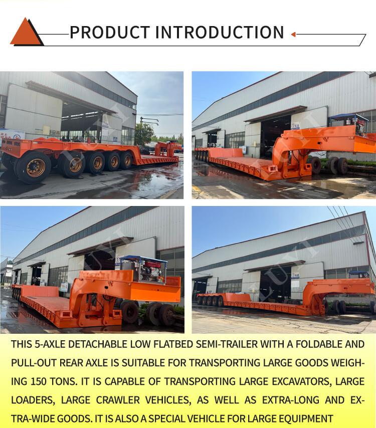 LUYI 5-assige afneembare dieplader met zwanenhals, geproduceerd in Shandong, China, is een krachtig zwaar transportvoertuig dat is afgestemd op ultrazware vrachtbehoeften.