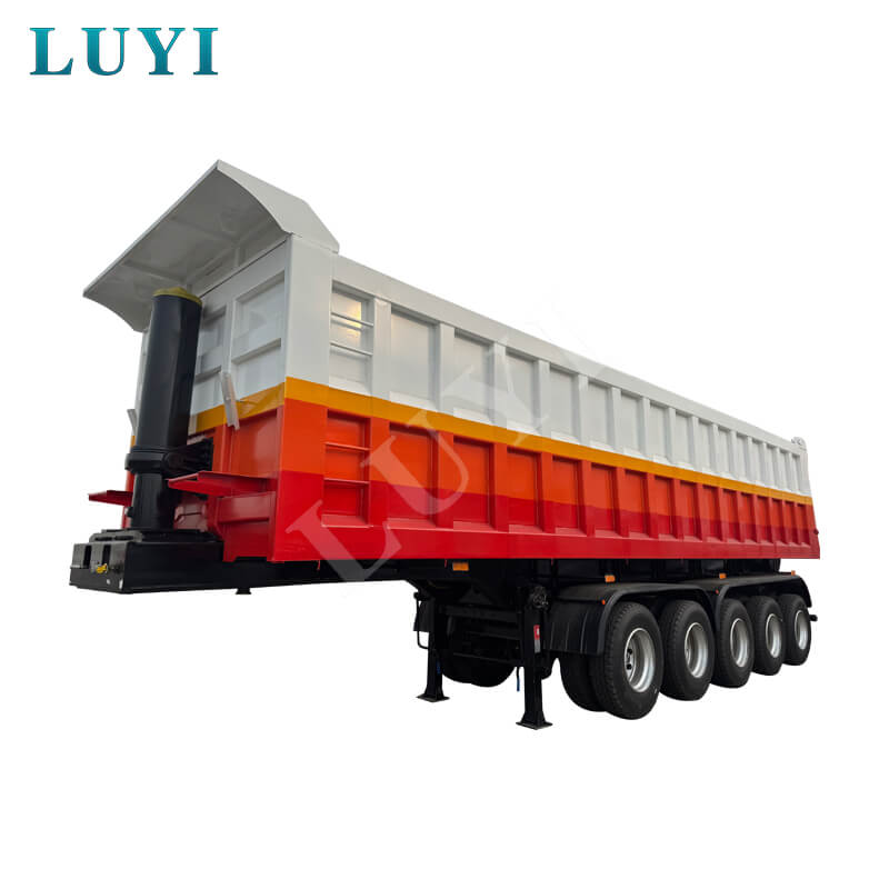 De LUYI 5-assige heavy-duty 120 ton achterdumptrailer, ook wel bekend als een achterkipoplegger, is afkomstig uit de provincie Shandong, China. Het is een vrachtwagencompatibele oplegger die speciaal is ontworpen voor zware vracht en effectief voldoet aan de behoeften van het transport van grote ladingen.