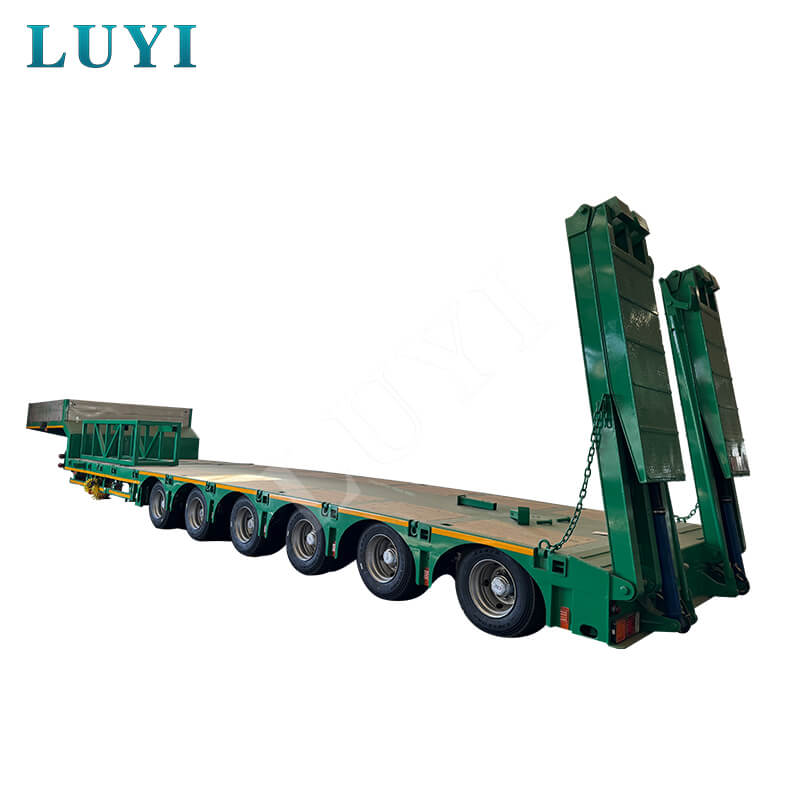De Luyi 6-assige 100-tons dieplader, afkomstig uit de provincie Shandong, China, is een gloednieuwe vrachtwagenaanhangwagen die speciaal is ontworpen voor het transport van zwaar materieel en die efficiënt kan voldoen aan de behoeften van het laden van vracht.