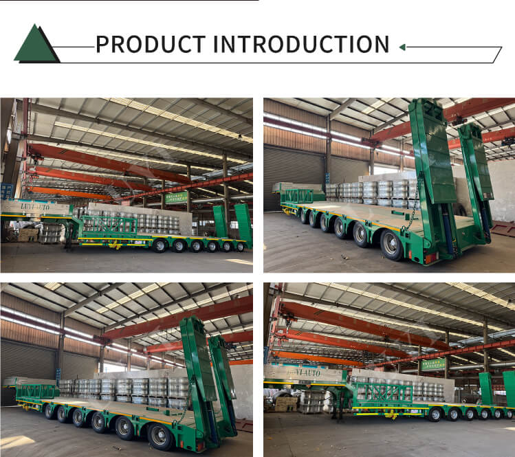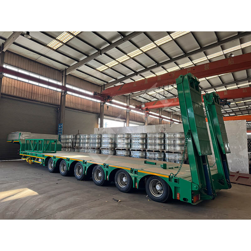 De trailer is gemaakt van hoogwaardig koolstofstaal en heeft een solide en duurzame algehele structuur. Met een maximale effectieve belasting van 100 ton kan hij met gemak verschillende soorten zwaar materieel vervoeren. Uitgerust met een ontwerp met 6 assen en een mechanisch veersysteem, is hij afgestemd op twee bandenspecificaties: 11.00r20 en 12r22.5. Het beschikt over een sterke rijstabiliteit en kan zich aanpassen aan een verscheidenheid aan algemene transportwegomstandigheden, waardoor de veiligheid van goederen tijdens transport wordt gegarandeerd.