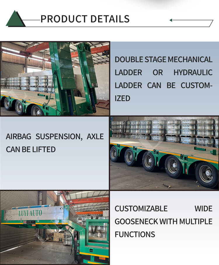 De Luyi 6-assige 100-tons dieplader, afkomstig uit de provincie Shandong, China, is een gloednieuwe vrachtwagenaanhangwagen die speciaal is ontworpen voor het transport van zwaar materieel en die efficiënt kan voldoen aan de behoeften van het laden van vracht.