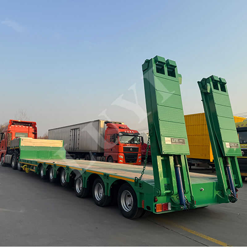 Het meet 1700030001500 mm en heeft een niet-afneembaar zwanenhalsontwerp voor structurele stabiliteit. Voor gemakkelijk laden en lossen zijn optionele hydraulische of handmatige ladders verkrijgbaar. Het veersysteem biedt twee keuzes: luchtvering of bladvering, om soepel en stabiel rijden te garanderen. Uitgerust met 6 assen en een landingsgestel van 28 ton, levert hij een betrouwbaar draagvermogen. De kleuren zijn aanpasbaar om aan de uiteenlopende gebruikersbehoeften te voldoen, en er zit een garantie van zes jaar op, waardoor gebruikers gegarandeerde ondersteuning op lange termijn krijgen. Het is een ideale keuze voor zware transporttaken.