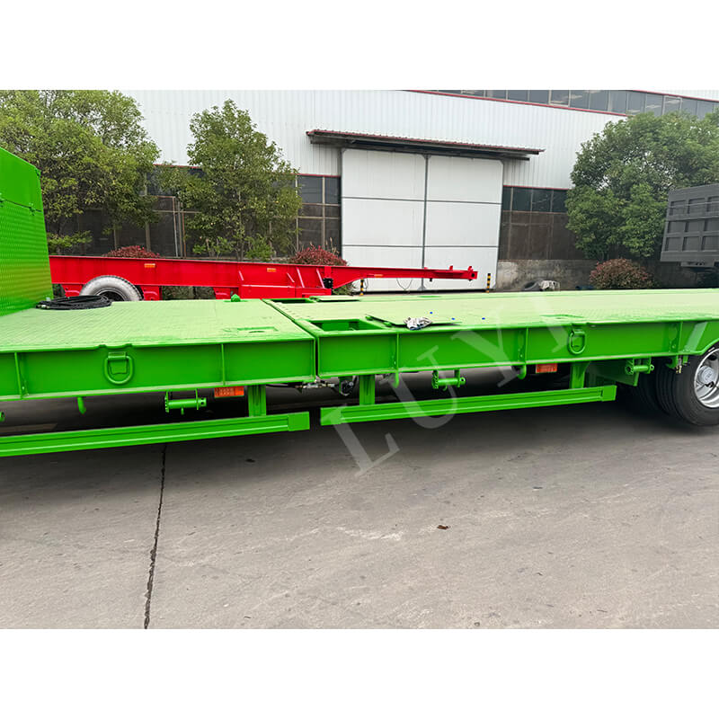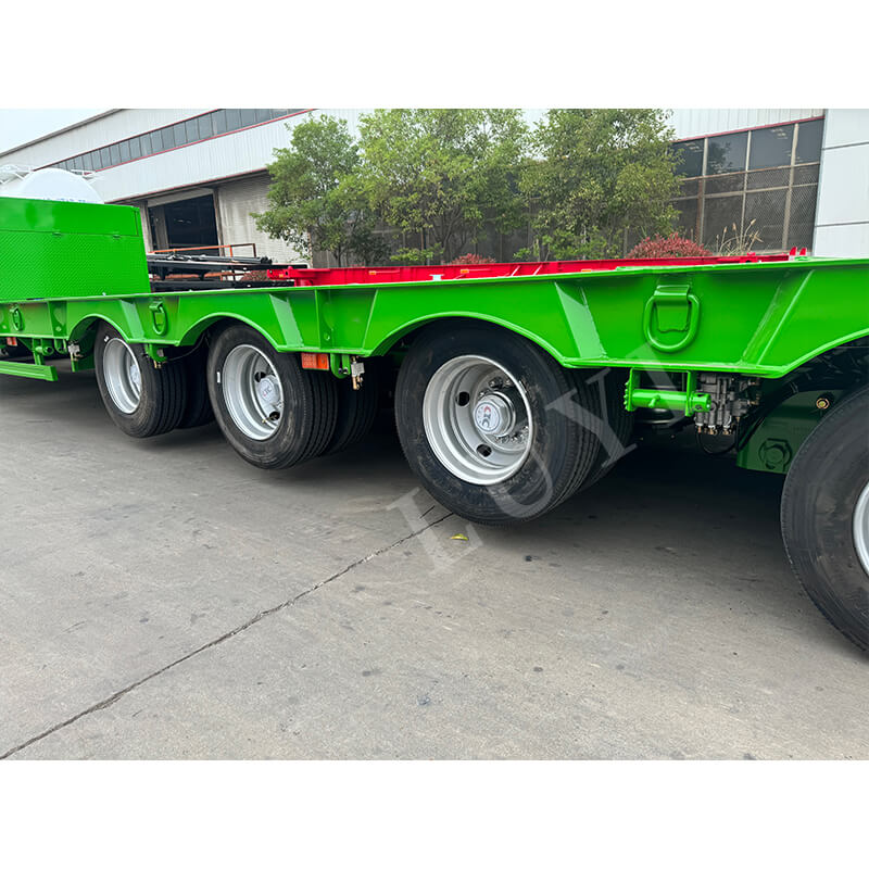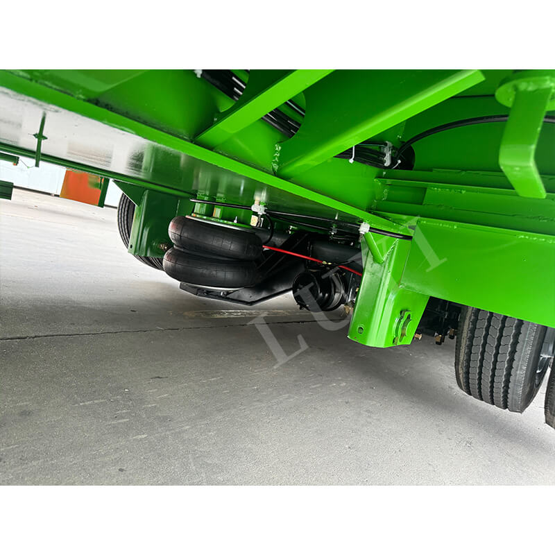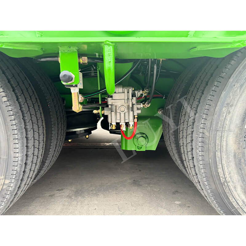 Uitgerust met assen van het merk Fuwa van 13 ton, mechanische vering en een remsysteem met twee leidingen, biedt hij een gevoelige remreactie en veilig rijden. Compatibel met verschillende bandenspecificaties, waaronder 11.00r20, 12r22.5, 315 en 385, heeft hij een maximaal effectief laadvermogen van 60.000 kg en een laadvermogen van 100 tot 120 ton. Hij is geconfigureerd met standaard stempels van 28 ton en wordt geleverd met optionele JOST-kingpins van 2 inch (50 mm) of 3,5 inch (90 mm). Aanpasbaar in kleur, het is een ideale keuze voor zware transportscenario's.