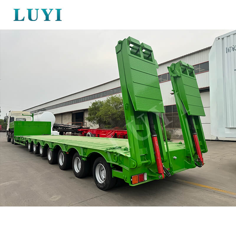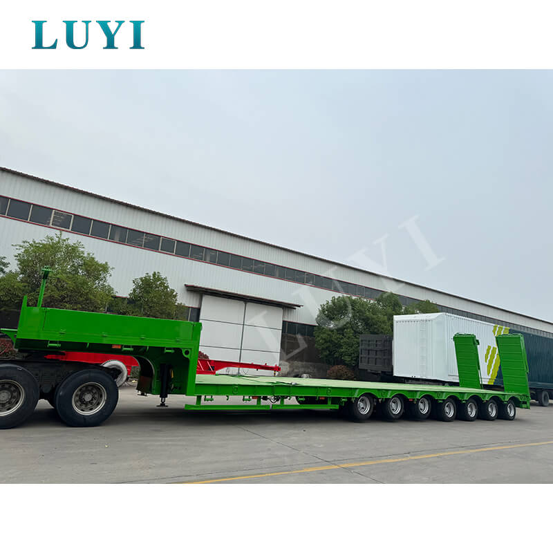 De Luyi Vehicle 7-Axle Lowboy Semi-Trailer, afkomstig uit de provincie Shandong, China, is een professionele oplegger ontworpen voor zwaar vrachtvervoer. De hoofdbalk is gemaakt van hoogwaardig staal, is gemaakt van hoogwaardig T700/Q345-staal en is gecoat met polyurethaanverf, die zowel stevigheid als corrosiebestendigheid biedt. Het meet 1700030001500 mm.