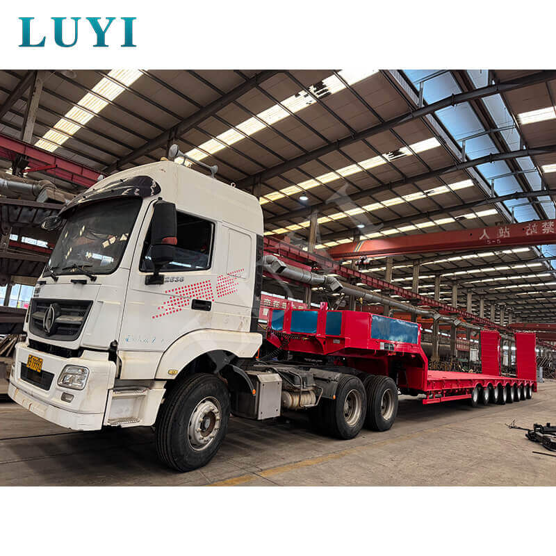 De 8-assige Heavy-Duty 220-Ton Gooseneck Low-Bed Trailer van Luyi Vehicle, afkomstig uit Shandong, China, is een oplegger gespecialiseerd in het vervoeren van zwaar materieel. Het is gebouwd met hoogwaardig staal en meet 17.000×3000×1800 mm, met een draagvermogen van 60 tot 200 ton en een maximaal effectief laadvermogen van 200 ton, waardoor volledig wordt voldaan aan de zware transportbehoeften.