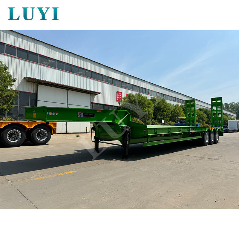 De Luyi Heavy-duty Transport 3-assige 60-tons zwanenhals Lowboy oplegger, afkomstig uit de provincie Shandong, China, is gemaakt van hoogwaardig staal en dient als een zeer efficiënte en betrouwbare vrachtwagenaanhangwagen. Hij beschikt over een maximaal effectief laadvermogen van meer dan 30.000 kg, met aanpasbare draagcapaciteit en afmetingen om zich flexibel aan te passen aan diverse transportscenario's.