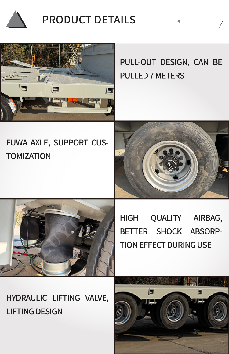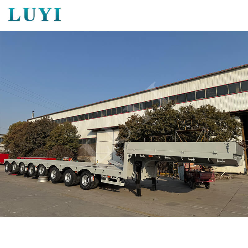 De LUYI 8-assige 17m zware dieplader, afkomstig uit Shandong, China, is een hoogwaardige uitrusting die is afgestemd op zwaar vrachtvervoer. Met een laadvermogen van 80 ton en een maximaal laadvermogen van meer dan 30.000 kg kan hij moeiteloos grote technische machines en zware componenten aan. Met afmetingen van 16900*3000*1800 mm past het diepladerontwerp zich aan aan te hoge lading, waardoor beperkingen op de transporthoogte effectief worden vermeden.