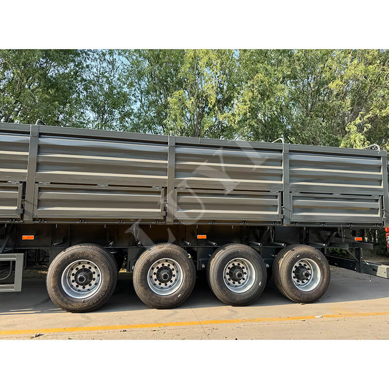 LUYI 60-tons klasse 4-assige zijkipper-oplegger is aangepast voor zwaar transport van bulkgoederen in scenario's zoals mijnen en infrastructuurprojecten. Het maakt gebruik van een zijdelings kantelende hydraulische losstructuur, waardoor snel lossen in krappe ruimtes en het volledig legen van compartimenten binnen enkele minuten mogelijk is, waardoor de efficiëntie van de vrachtomzet aanzienlijk wordt verbeterd. De dragende kerncomponenten zijn gemaakt van hoogwaardig, duurzaam staal, gecombineerd met een 4-assig ontwerp en luchtgeveerde airbags. Dit verdeelt niet alleen de druk van zware lasten van 60 ton en voldoet aan de wettelijke eisen, maar past ook de schokabsorptiehardheid aan de belasting aan, waardoor schokken van de lading en de impact op de weg worden verminderd. Het hele voertuig combineert efficiënt lossen, duurzaamheid bij zware ladingen en rijstabiliteit, waardoor het een betrouwbare keuze is voor zwaar bulkvrachtvervoer.