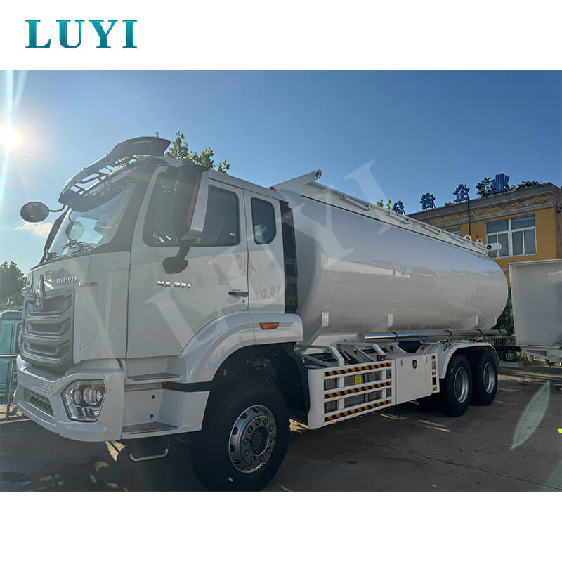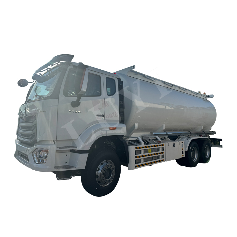 Deze olietankoplegger komt uit Shandong, China, en is van het merk Sinotruk Howo NX. Het is speciaal ontworpen voor olietransport. Het voertuig heeft een 6×4 aandrijfconfiguratie, met een totaalgewicht van ≥30 ton en een laadvermogen van 31-40 ton. Het tankvolume bedraagt ​​25.000 liter, wat efficiënt kan voldoen aan de behoeften van grootschalig olietransport.