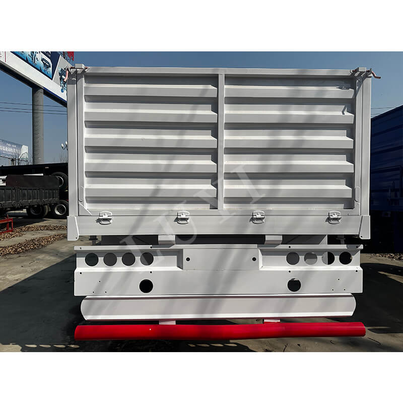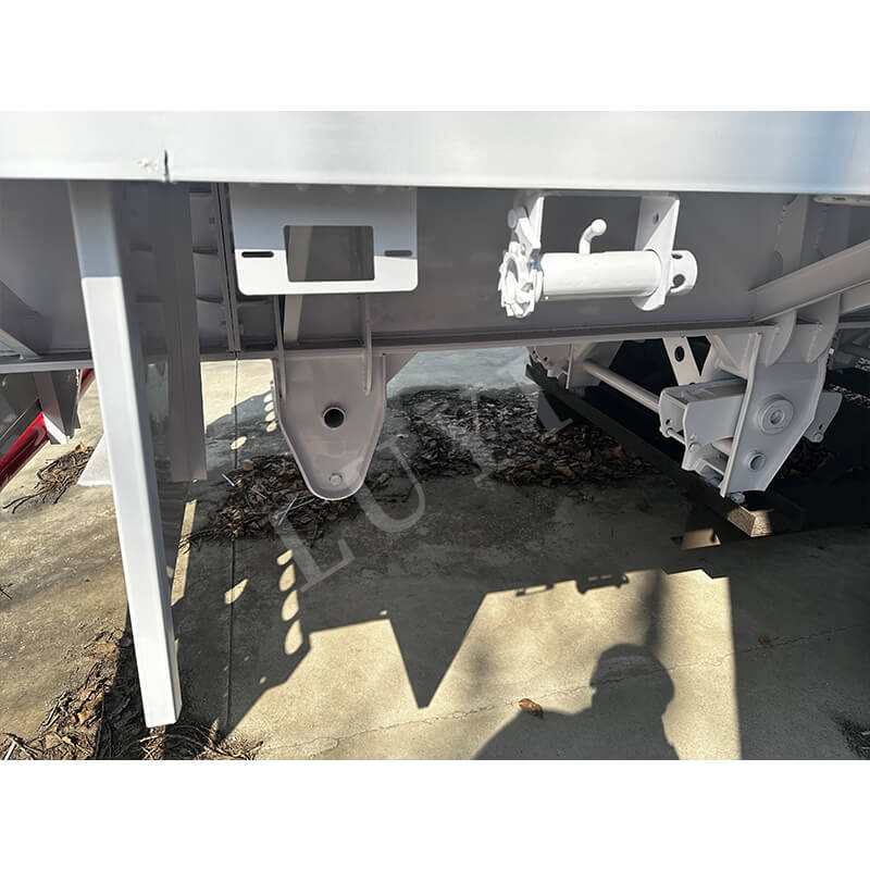 Met een afmeting van 12500×2500×1600 mm is hij uitgerust met 3 assen (optioneel van bekende merken als Fuhua, BPW, SAIF en CIMC) en dubbele ophangingsopties (mechanische en luchtvering) voor soepel rijden. De standaard steunpoten van 28 ton zorgen voor veilig laden en lossen, terwijl banden in 12R22.5/12.00R20/11R22.5 specificaties zich aanpassen aan verschillende wegomstandigheden. Bovendien vergroten de bladveren van 90 x 13 x 10 mm het draagvermogen, verbetert de mechanische ladder het bedieningsgemak, zijn de kleuren aanpasbaar en verhoogt het klepgestuurde remsysteem de rijveiligheid, waardoor het betrouwbare transportondersteuning biedt.