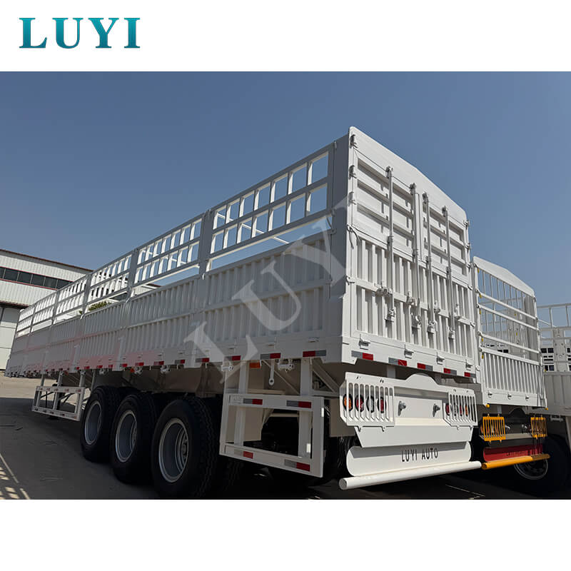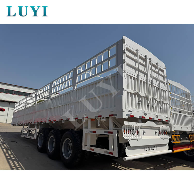 De trailer is voornamelijk gemaakt van hoogwaardig staal en heeft een solide en duurzame structuur. De maximale effectieve belasting bereikt 100 ton, en het reguliere laadvermogen varieert van 80 tot 100 ton. Met afmetingen van 1250025002000 mm is hij uitgerust met 3 assen van de merken FUWA of BPW, en u kunt flexibel kiezen voor mechanische vering of luchtvering om zich aan te passen aan verschillende wegomstandigheden. De kingpin biedt JOST-opties van 2 inch (50 mm) of 3,5 inch (90 mm), de steunpoten hebben een standaardspecificatie van 28 ton en de banden kunnen 12R22.5-, 12.00R20- of 11R22.5-modellen zijn. Het beschikt over uitgebreide functies en kan dieren, algemene goederen en containers vervoeren, en de kleur kan naar wens worden aangepast, waardoor een betrouwbare oplossing wordt geboden voor verschillende vrachtscenario's.