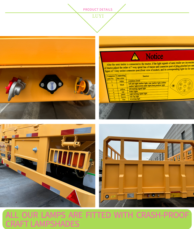 Deze oplegger biedt aanpasbare kleuren om aan individuele voorkeuren te voldoen en ondersteunt ook asaanpassingen (2/3/4 as) voor diverse transportscenario's. Gesteund door LUYI's strenge kwaliteitscontrole en professionele after-sales service, biedt het duurzame, efficiënte en veelzijdige transportondersteuning voor wereldwijde klanten en wordt het een vertrouwde partner in grensoverschrijdende logistiek.