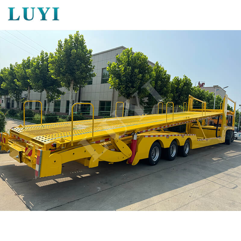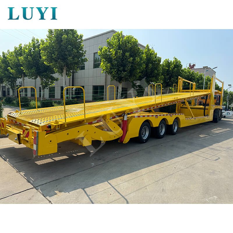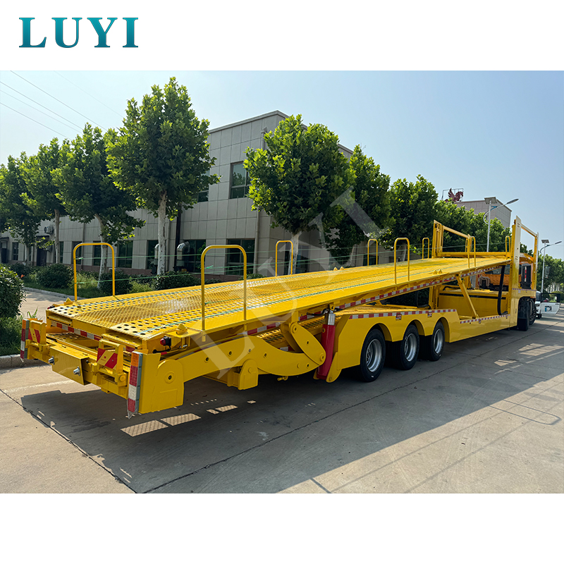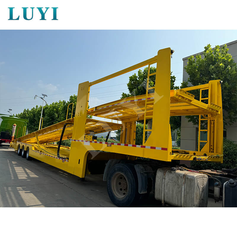 LUYI 40ft 4-assige gesloten dubbeldekker autotransporter-oplegger van Shandong Luyi Special Vehicle Manufacturing Co., Ltd. is ontworpen voor de levering van nieuwe auto's, het transport van gebruikte auto's en andere scenario's. De volledig gesloten carrosserie heeft een laadvermogen van 40-60 ton dankzij de 4-assige structuur en beschermt voertuigen tegen externe schade. Het dubbeldeksstapelplatform vergroot de laadcapaciteit tot 6-8 eenheden, terwijl het kantelbed het laden en lossen vereenvoudigt bij modellen met een laag chassis. Het is gemaakt van staal en biedt een hoge sterkte, slijtvastheid en kosteneffectiviteit, ideaal voor hoogfrequent, zwaar commercieel transport.