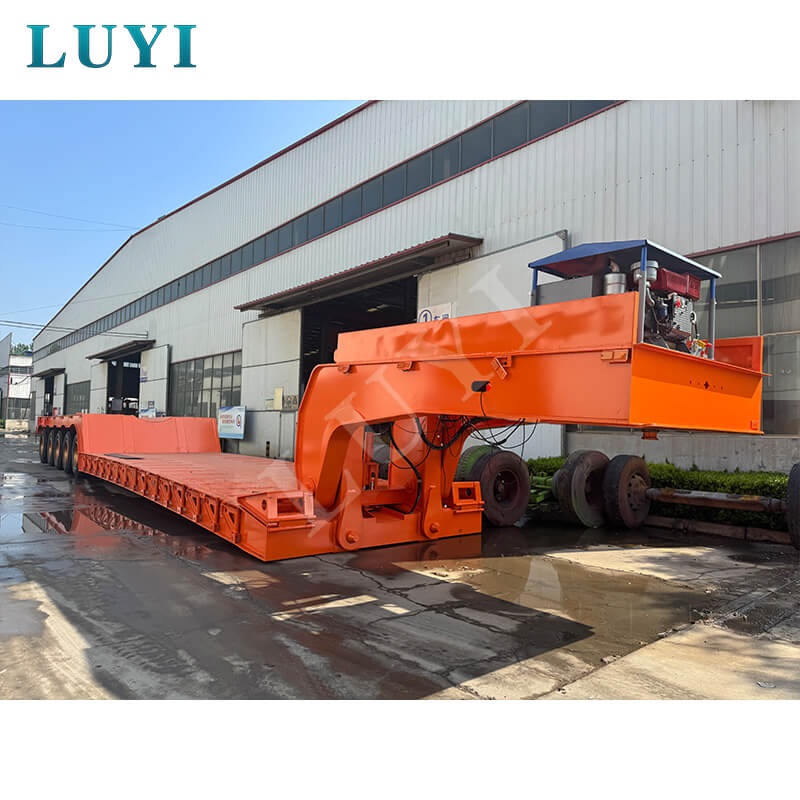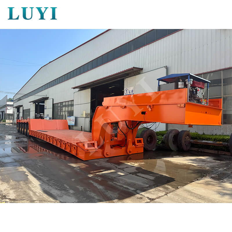 LUYI 5-assige afneembare dieplader met zwanenhals, geproduceerd in Shandong, China, is een krachtig zwaar transportvoertuig dat is afgestemd op ultrazware vrachtbehoeften.