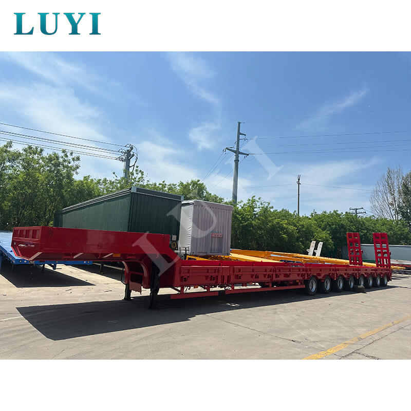 De 8-assige 17 meter uitschuifbare dieplader met zwanenhals van LUYI, afkomstig uit Shandong, China, is een krachtige oplegger die speciaal is ontworpen voor het transport van zwaar materieel.