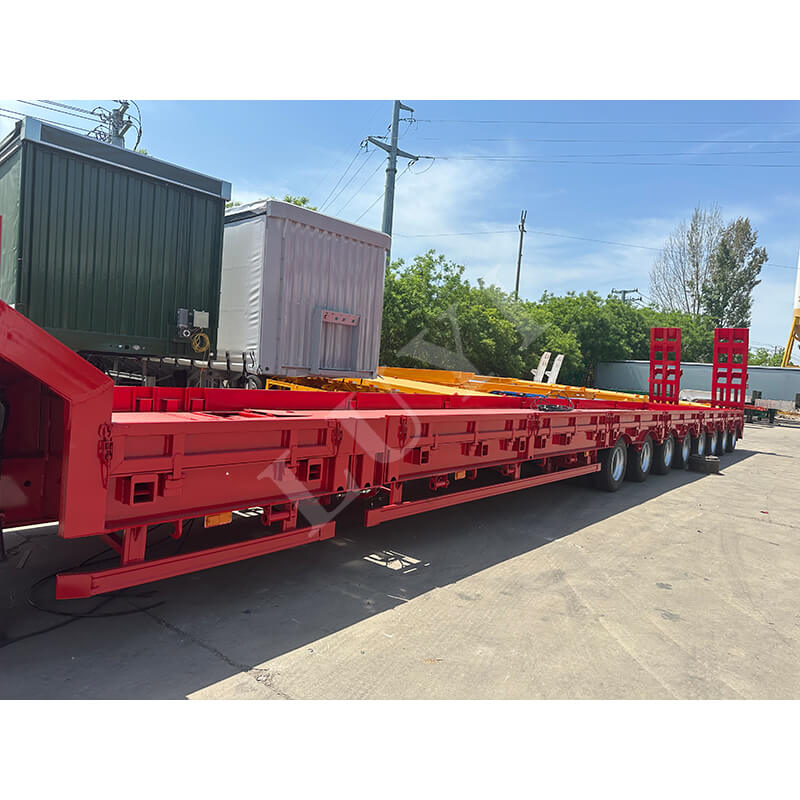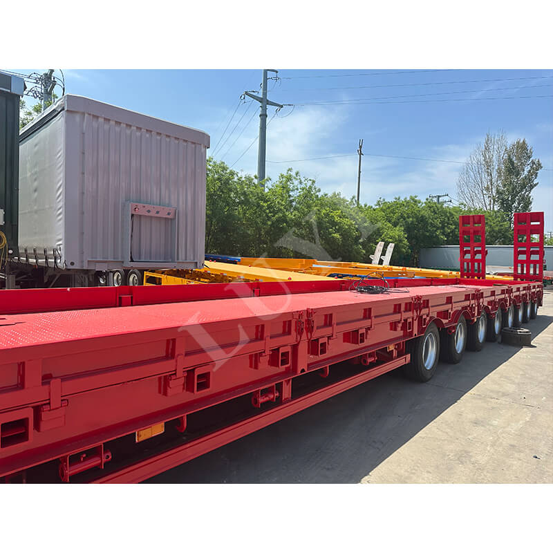 Hij is gebouwd met hoogwaardig koolstofstaal of aluminium en combineert duurzaamheid en lichtgewichtvereisten, met een maximaal laadvermogen van 100 ton om gemakkelijk verschillende transportscenario's voor zwaar materieel aan te kunnen. Uitgerust met een ontwerp met 8 assen, biedt hij optionele assen van het merk Fuwa of BPW, gecombineerd met mechanische vering of luchtveersystemen, waardoor de rijstabiliteit en de veiligheid van de lading worden gegarandeerd. Er zijn drie bandenspecificaties beschikbaar: 12R22.5, 12.00R20 en 11R22.5, geschikt voor verschillende wegomstandigheden.