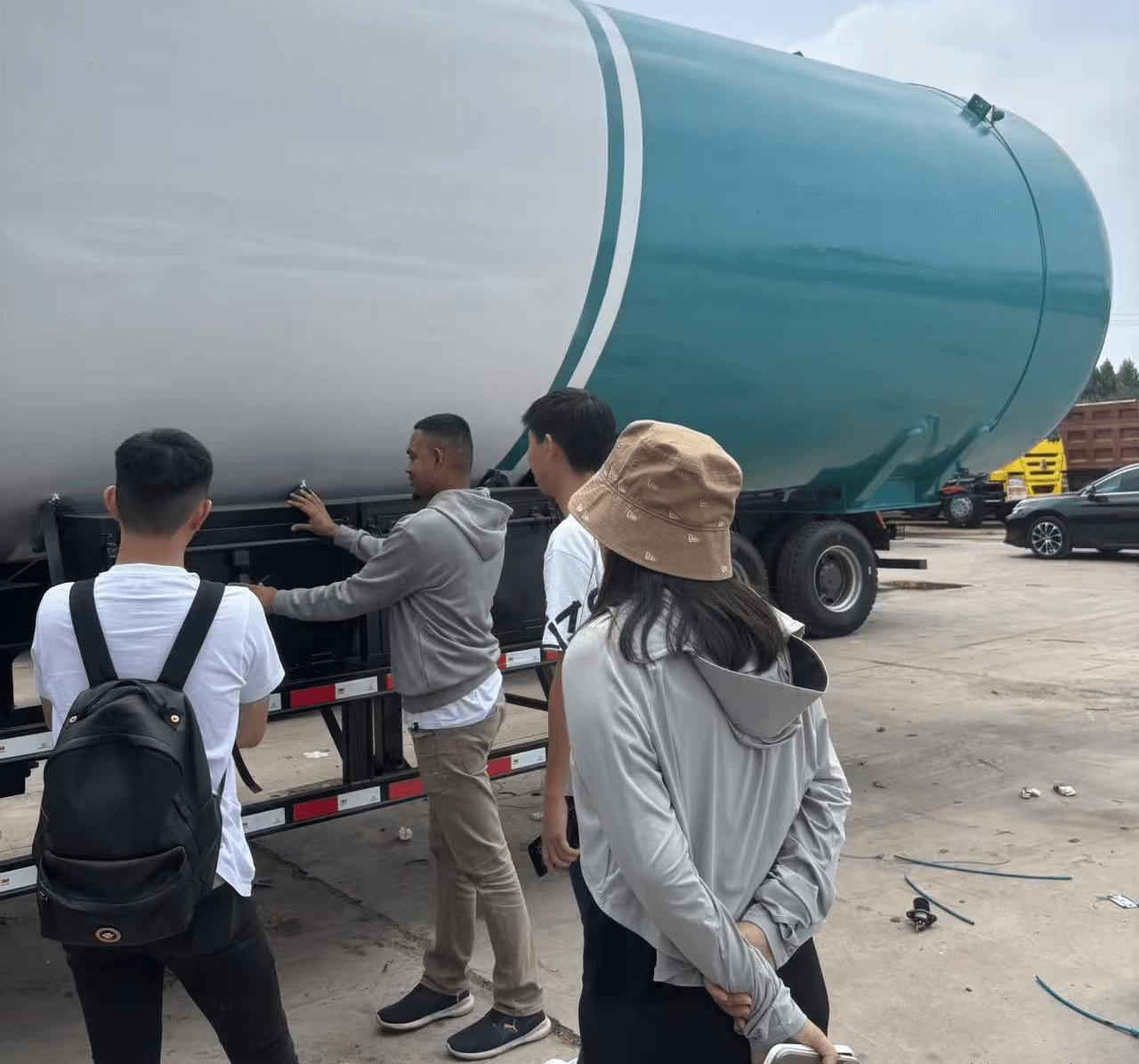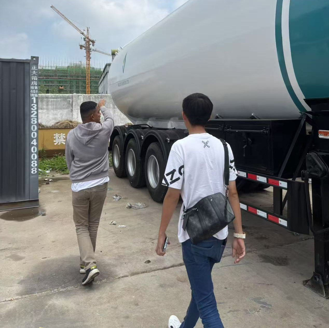 De Liberiaanse cliënt inspecteerde zorgvuldig elk detail van de olietank semi -trailer, van het tanklichaamsmateriaal tot het lasproces, van het remsysteem tot het lekbestendige ontwerp en gedetailleerde vragen gesteld. Bij het leren dat de semi -trailer van de olietank is gemaakt van staal met hoge sterkte, heeft de kenmerken van corrosiebestendigheid en impactweerstand en heeft de strikte druktests doorgegeven om de veiligheid tijdens het transport te waarborgen, knikte de klant vaak om herkenning te tonen.