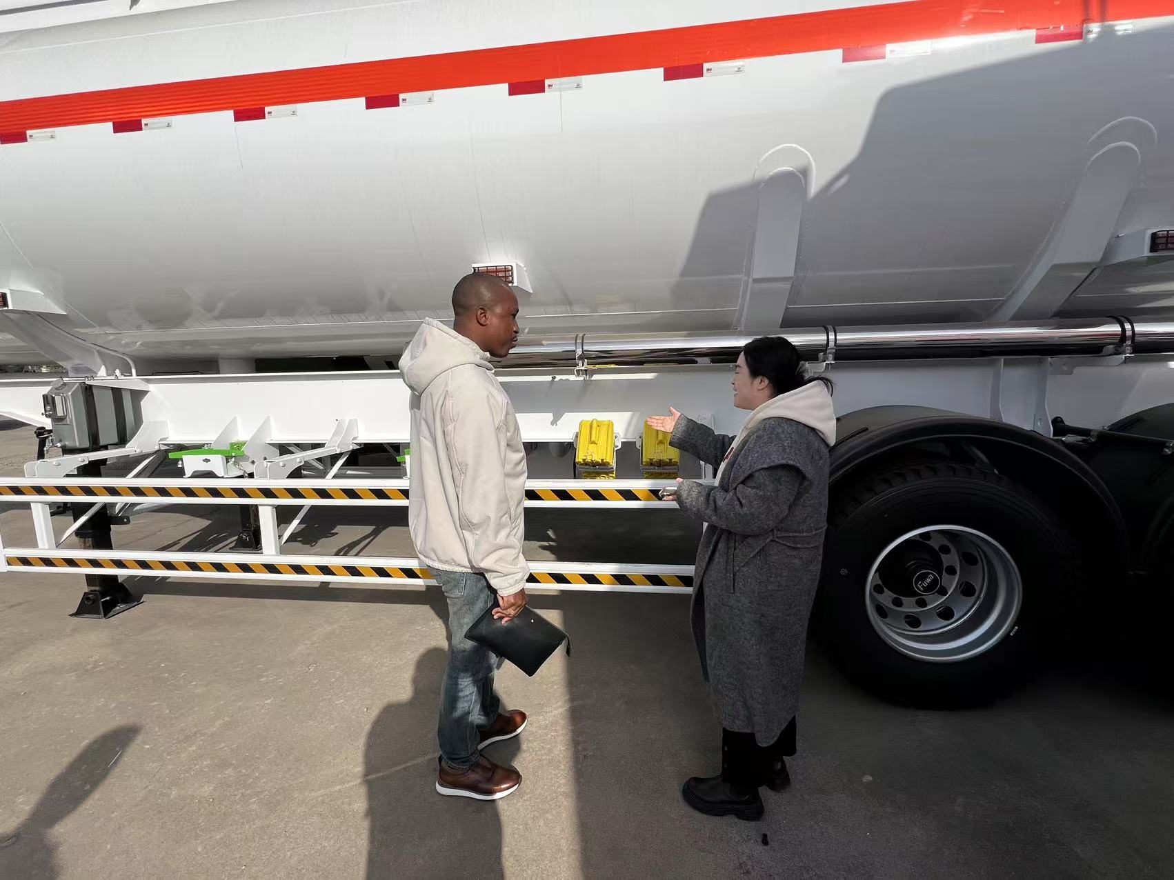 "Alle e-mails ter wereld zijn niet te vergelijken met het zien van eentankopleggerIn het eindproductgedeelte van de fabriek van LUYI klopte de Guineese vrachtoperator Kadiatou Diallo op de stalen tank van de tankoplegger, terwijl zijn stem vol goedkeuring was. Vorige week leidde hij zijn team de halve wereld over naar LUYI, aanvankelijk alleen maar om "de geruchtenkwaliteit te verifiëren". Hij wist niet dat deze inspectie hun samenwerking van "eerste contact" rechtstreeks naar "onderhandelingen over orderdetails" zou duwen.